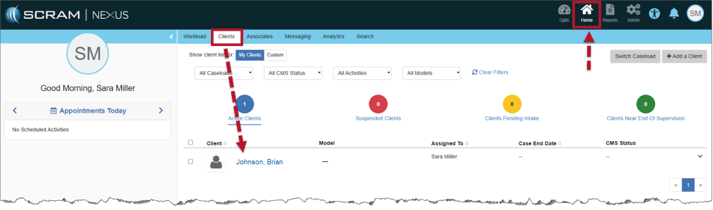 From the Client Profile page, select Location Tracking Map from the Quick Actions dropdown ellipsis menu.