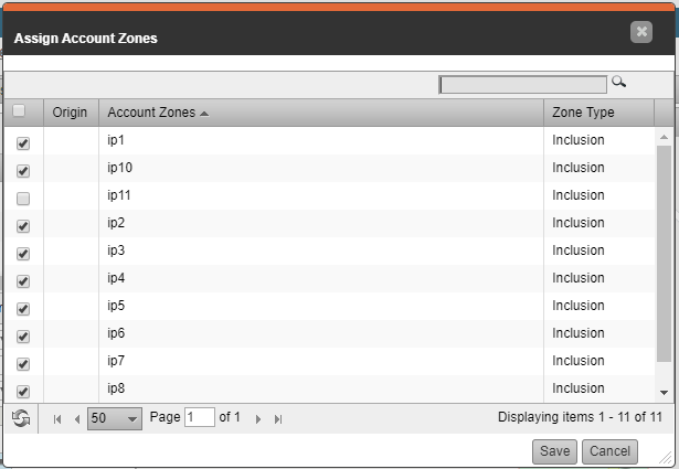 Some customers have thousands of Account Zones, such an Exclusion Account Zone for all schools, that may result in an increase in the time needed to display the zones on screen. To ensure the zones appear quickly, we’ve separated the list of zones into pages. The default is to display 50 zones per page, but you can choose the number of zones displayed per page by selecting the it from a dropdown menu. You may also advance to the next page or return to the previous page, or jump to a specific page number.