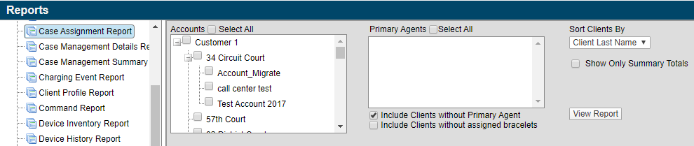 To run the report, click the Reports main menu option then select the Case Assignment Report node.