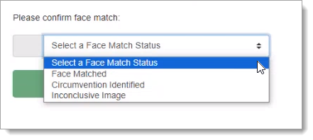 Select Face Match Status From Dropdown and ‘Acknowledge’ (hidden beneath dropdown menu above)
