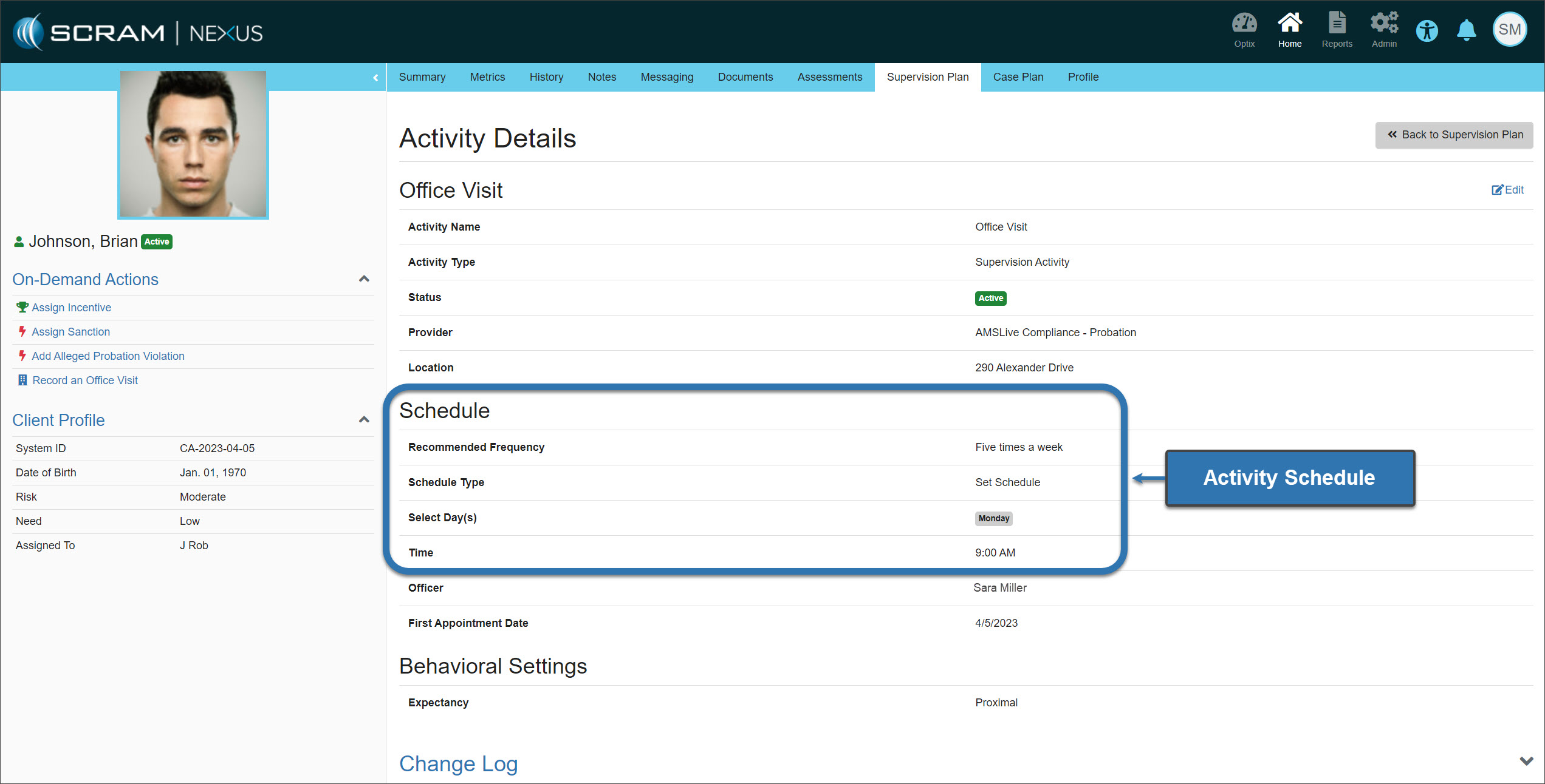 Future scheduled activities will reflect the frequency setup on the Supervision Plan’s Activity Details page.