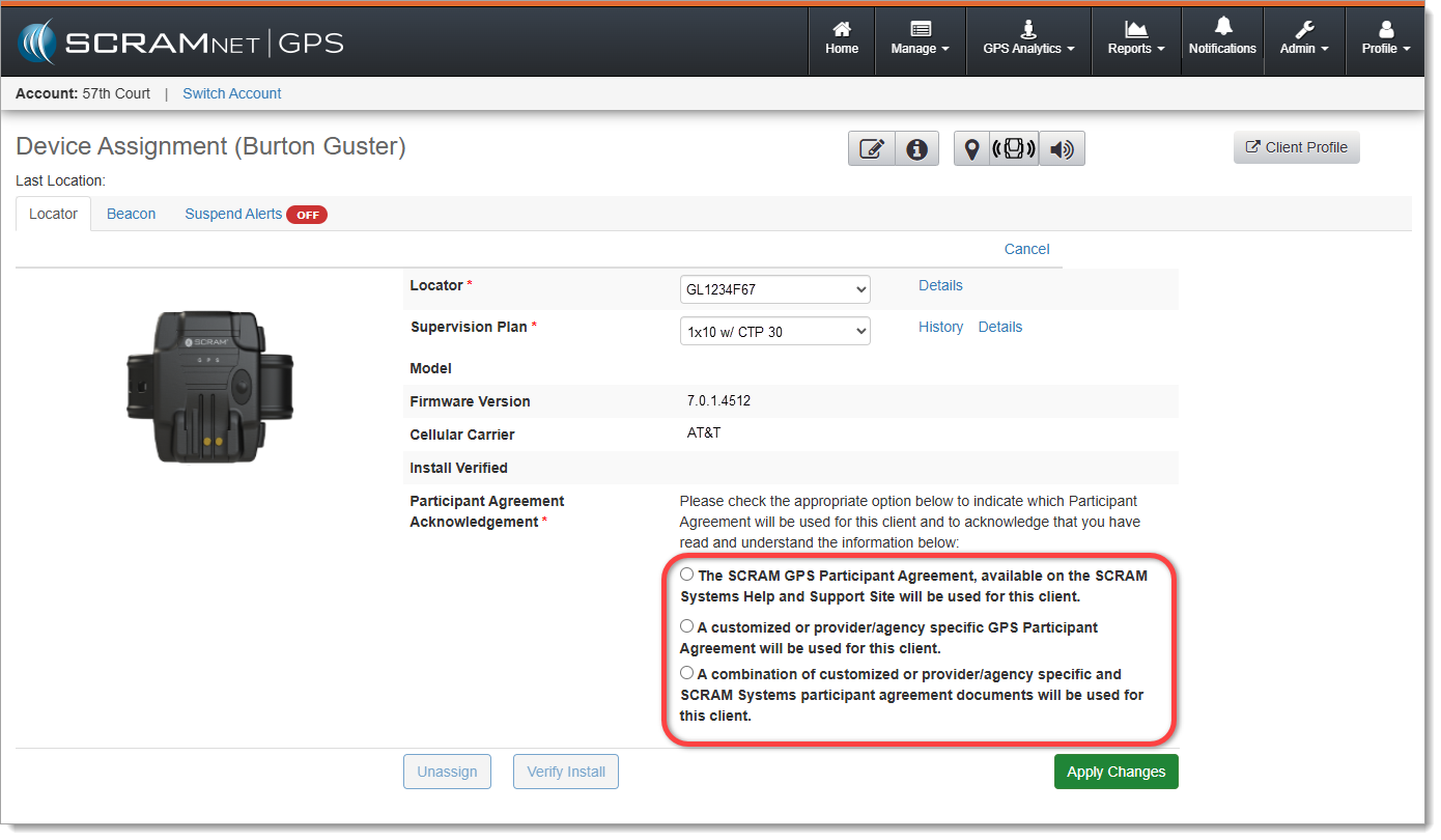 At 5:00 AM MDT on Thursday, September 18, 2025, SCRAM Systems will introduce a new third option to the Participant Agreement Acknowledgement during device assignment in SCRAMNET GPS.