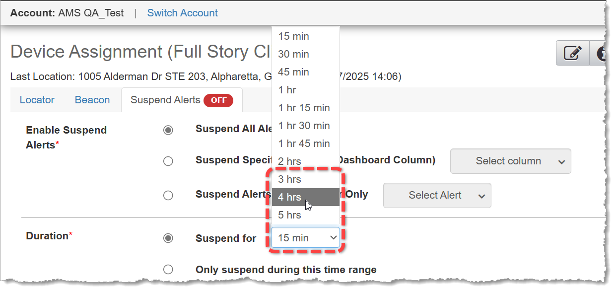 At 5:00 AM MST on Tuesday, November 4, 2025, SCRAM Systems will release an enhancement that will give you more duration options for suspending client alerts.