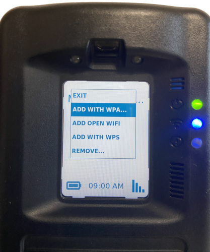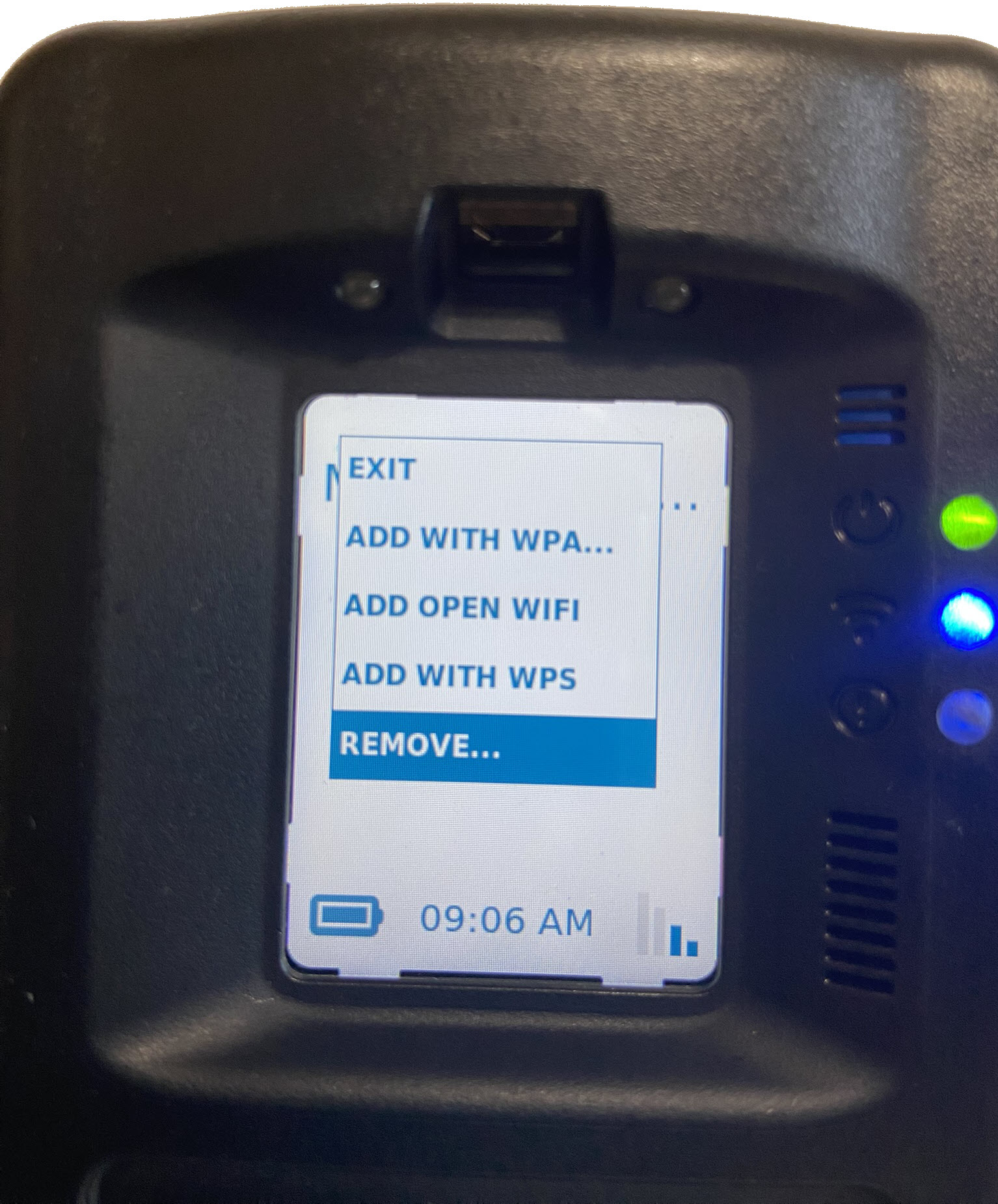 Currently, to connect to their Wi-Fi network, clients must navigate to wifisetup.scramsystems.com and enter their Wi-Fi network name and device serial number. Additionally, their RB Pro device must have a good cellular connection for the Wi-Fi setup to work. To simplify this process and provide additional options for connecting and managing client-accessible Wi-Fi networks, the client may access the RB Pro’s Wi-Fi Setup menu options. On the Wi-Fi setup menu, the client may select :