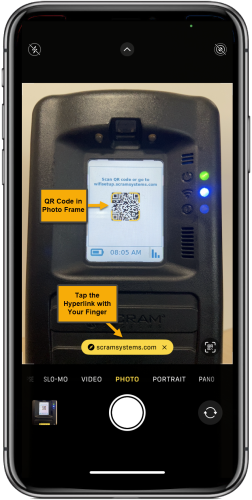 On the smartphone’s screen, tap the revealed hyperlink for “scramsystems.com.”