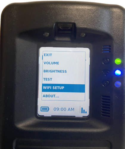 Use the up/down buttons on the RB Pro to highlight the WIFI SETUP option and then press the select button.