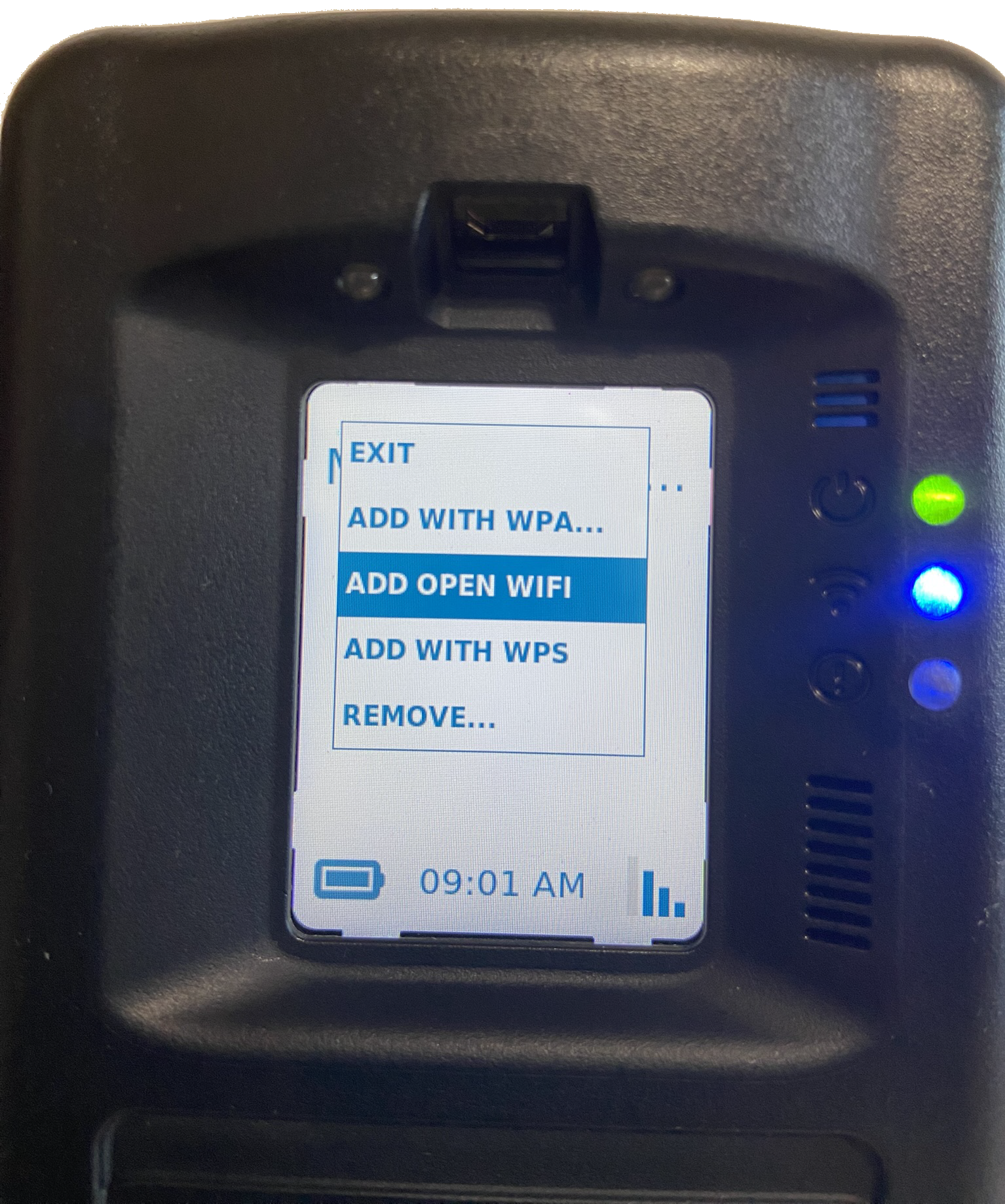 Using the up/down buttons on the RB Pro device, highlight the “open Wi-Fi” network you wish to connect to.
