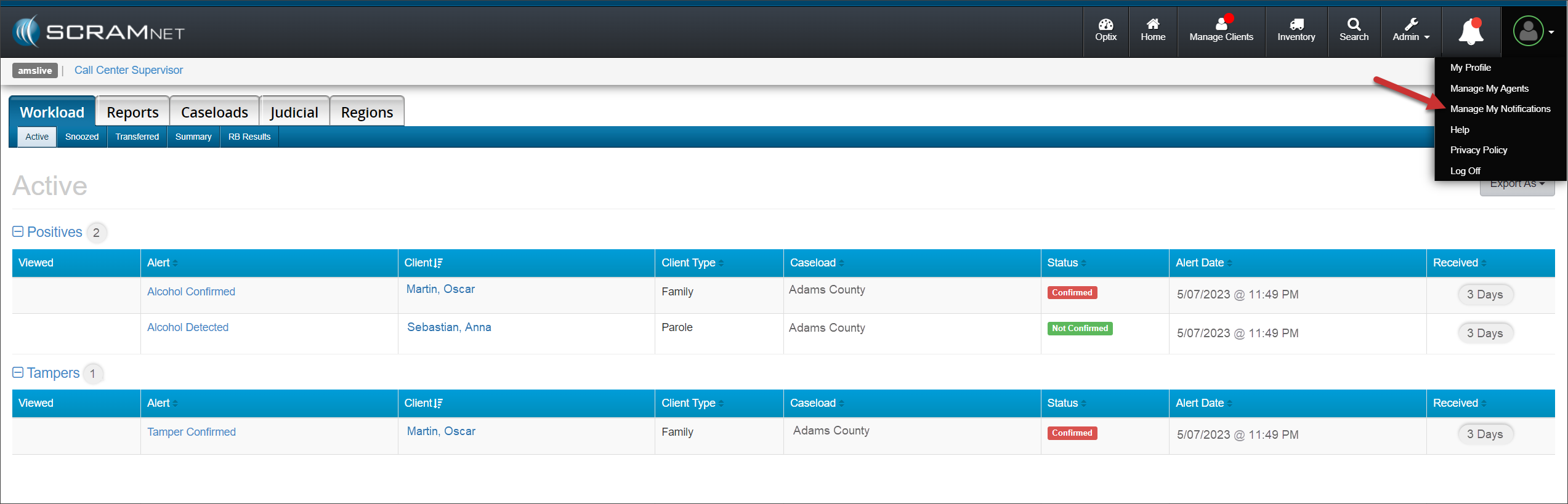 On June 14, 2023, SCRAM Systems will release enhancements to aid you when adding an Agent, Priority Notification, and Daily Summary email methods to your SCRAMNET Caseloads. With this enhancement, you may simultaneously add the Agent or Notifications to one or multiple Caseloads. Additionally, this enhancement eliminates the requirement for duplicate contact information entries for the same user within SCRAMNET.