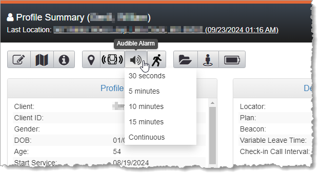SCRAMNET GPS users may now send the Audible Alarm for durations longer than 30 seconds. This can be useful when the client is in a loud environment, or to help you find a lost bracelet.