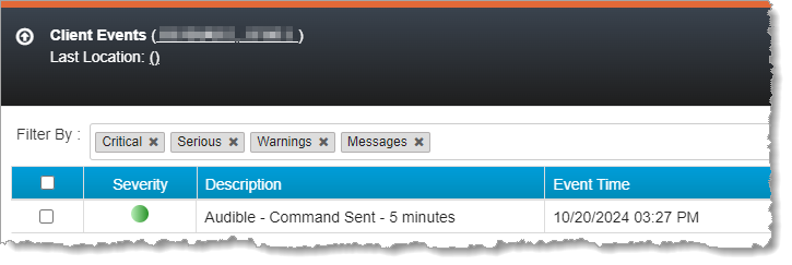 If the client presses the button for the Audible Alarm, then an “Audible – Offender pushed button event” is shown in the Client Events dialog. If the client has not pressed the button and the selected duration is reached, then an “Audible – Offender did not push button” event is shown.