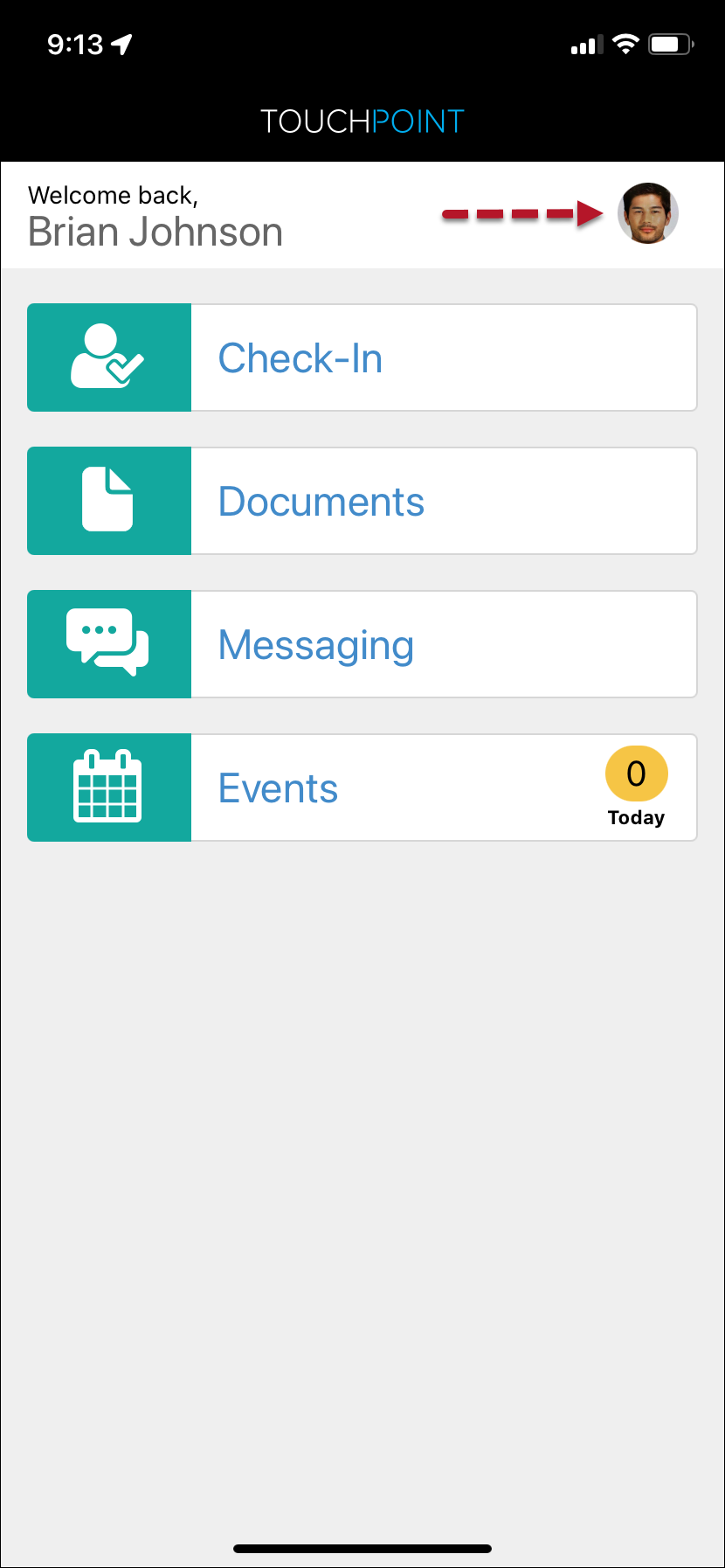 Biometric Verification has been disabled. When the user logs in to TouchPoint on their smartphone, biometric verification will not be required. The Check-In questions will be the first thing they see.