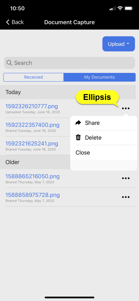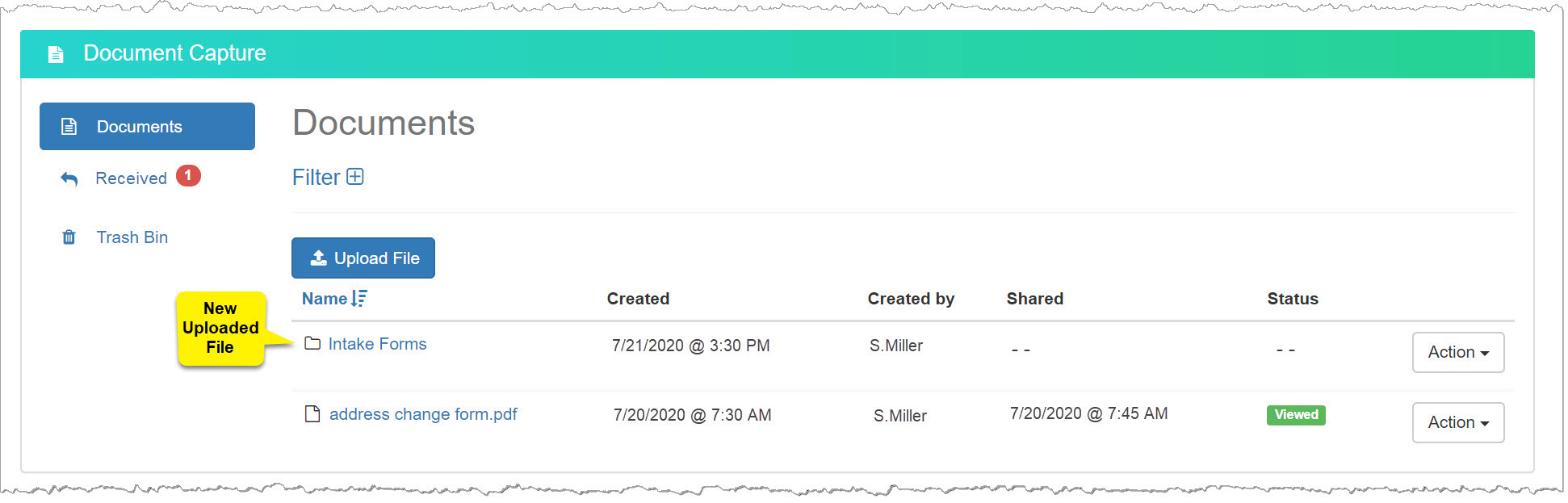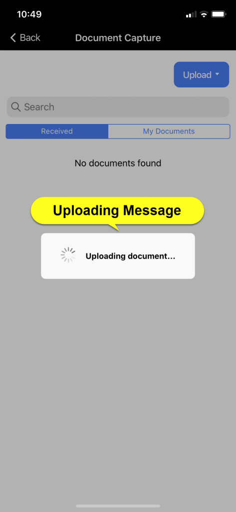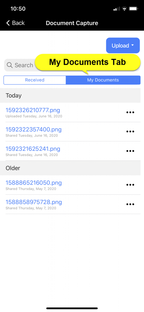- The Received tab on the Documents Capture screen within the TouchPoint app, will display all documents or images shared with the client.
