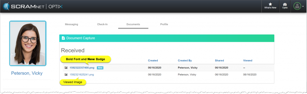 On the Documents tab for your client, new functionality is now available for improved management of the images received by the client. Additionally, you can now share a document or image with your client.