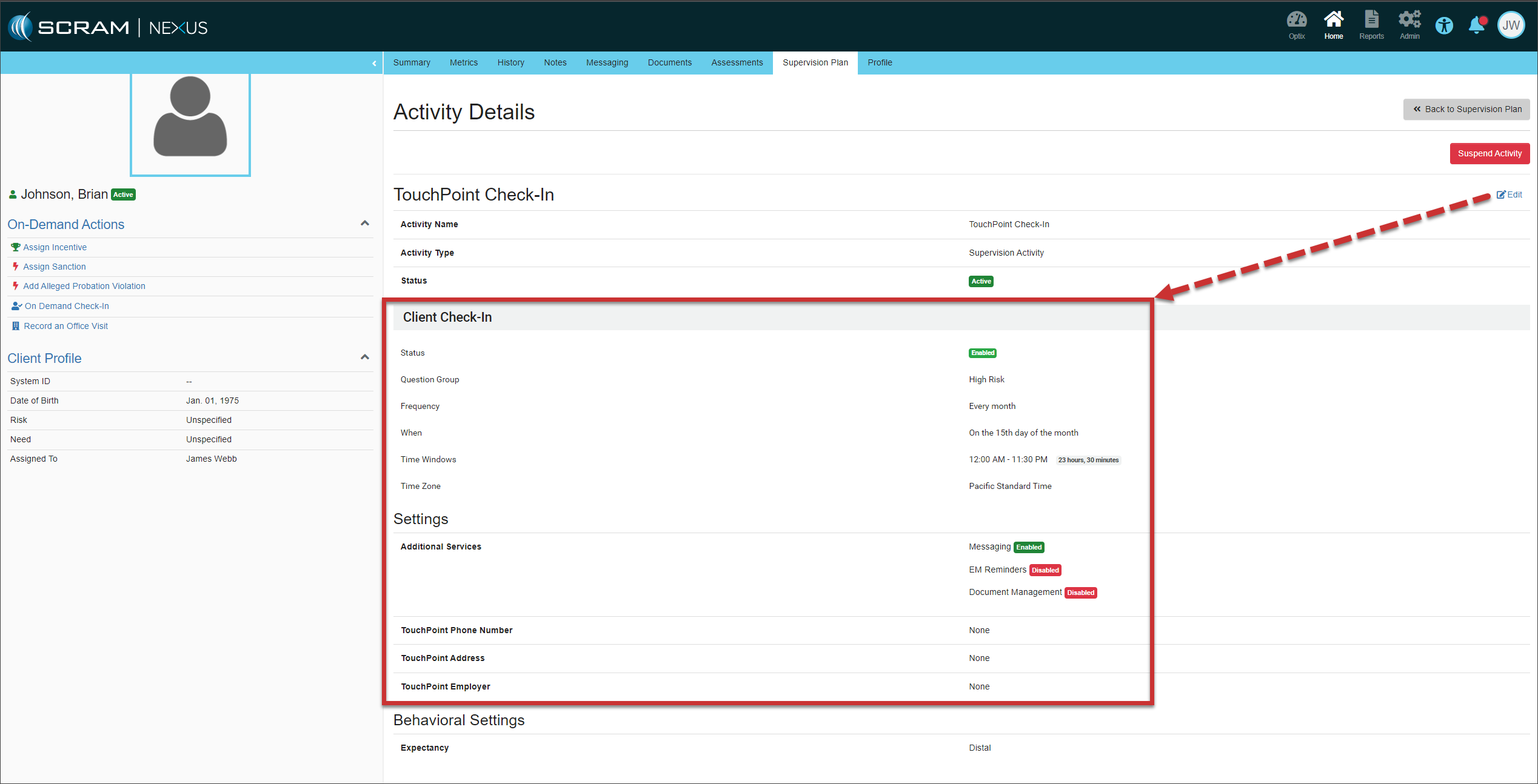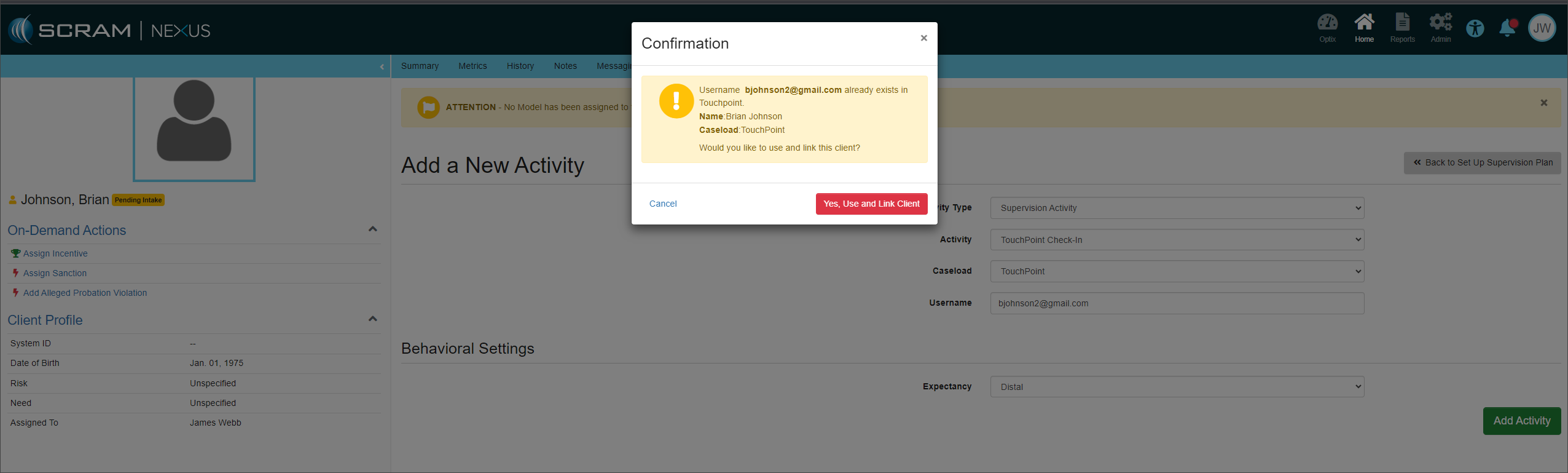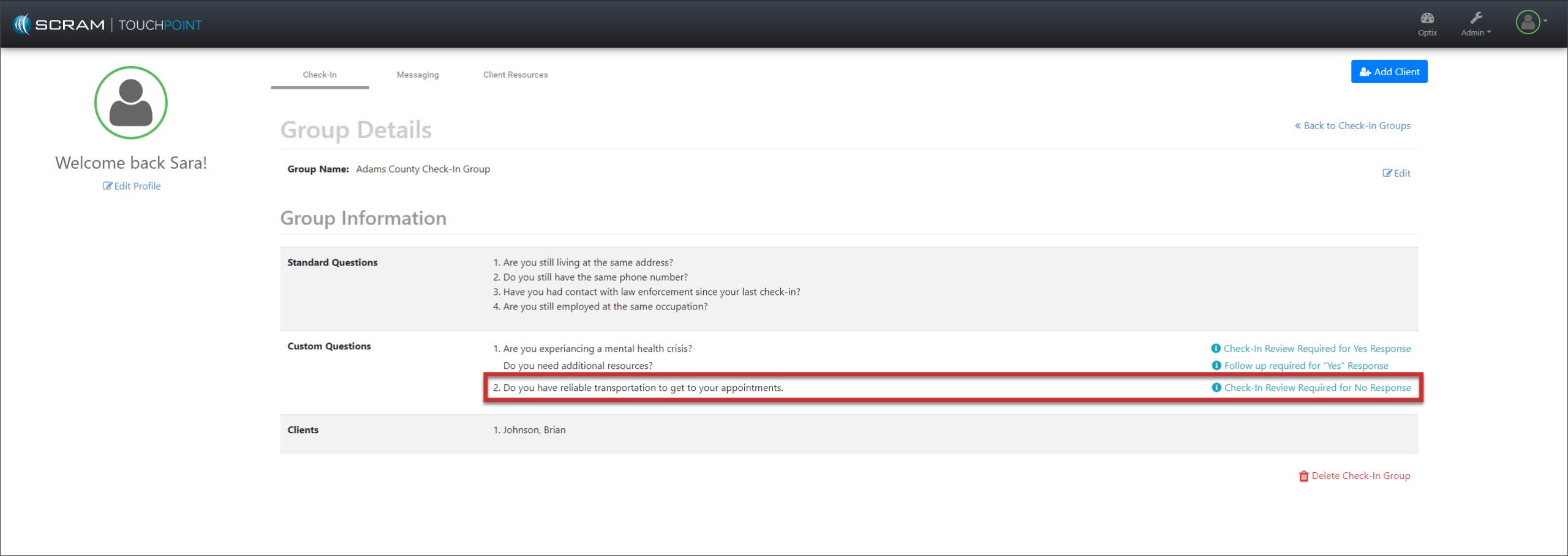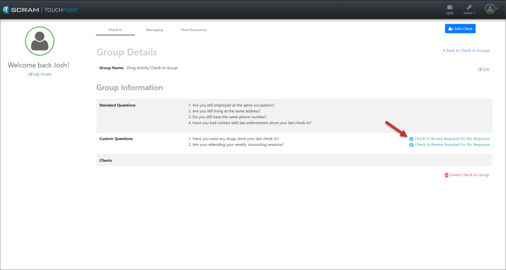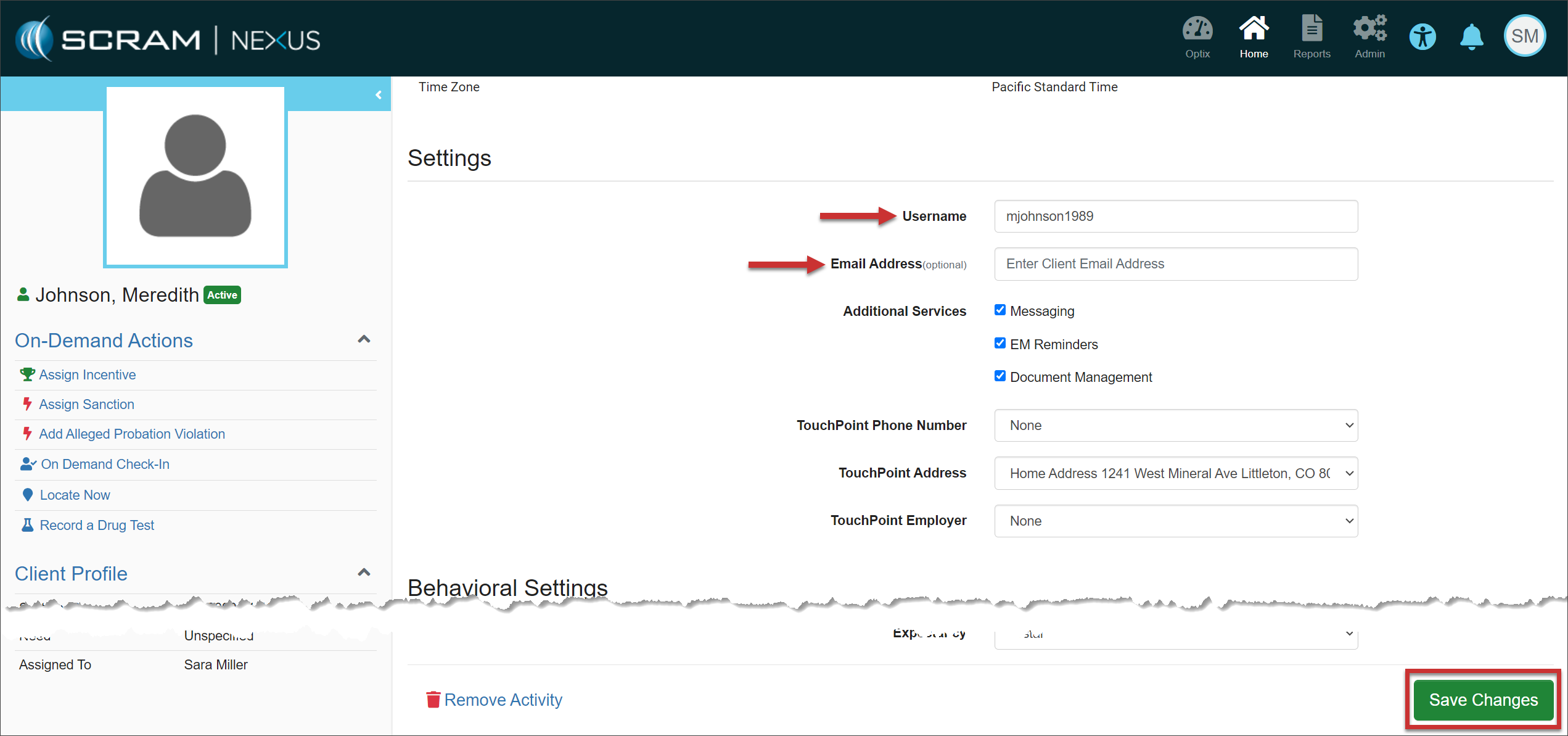 You do not need to take any actions for your current active TouchPoint client caseloads. Your clients may continue to log in using their email addresses. In the system, you will notice that SCRAM Systems has auto-generated the username field for each TouchPoint client.