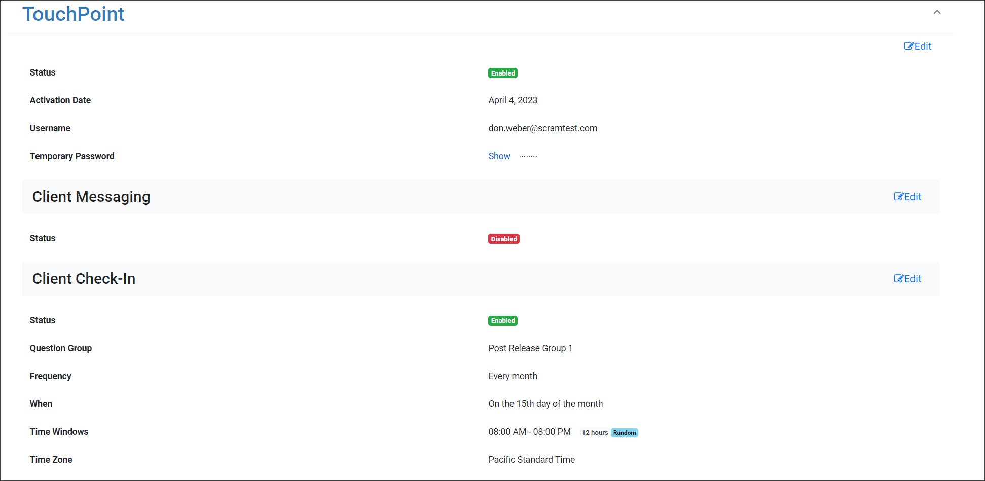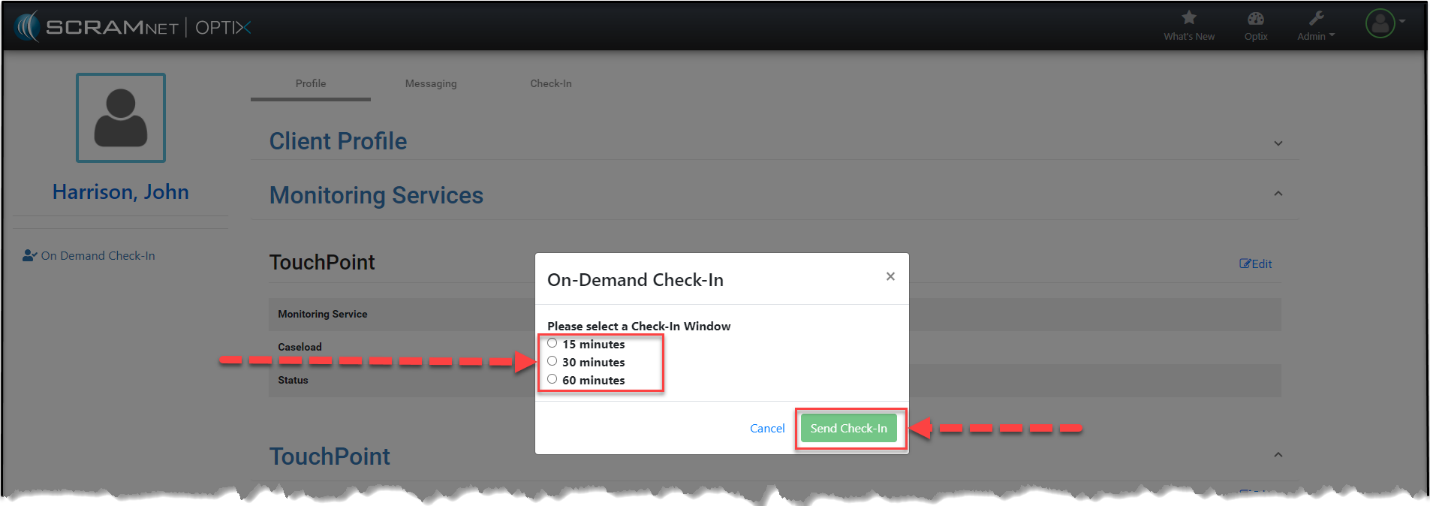 Today, April 27, 2023, SCRAM Systems released a new workflow when activating SCRAM TouchPoint Client Check-In activity to your client’s SCRAM Nexus supervision plan.