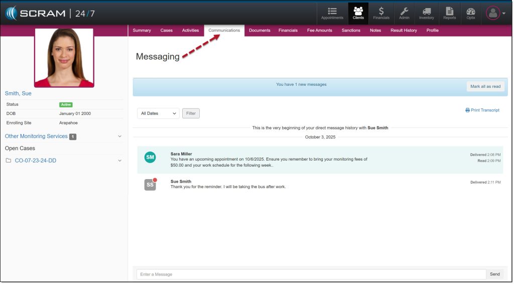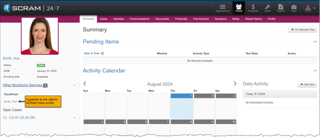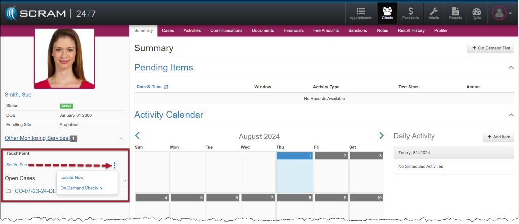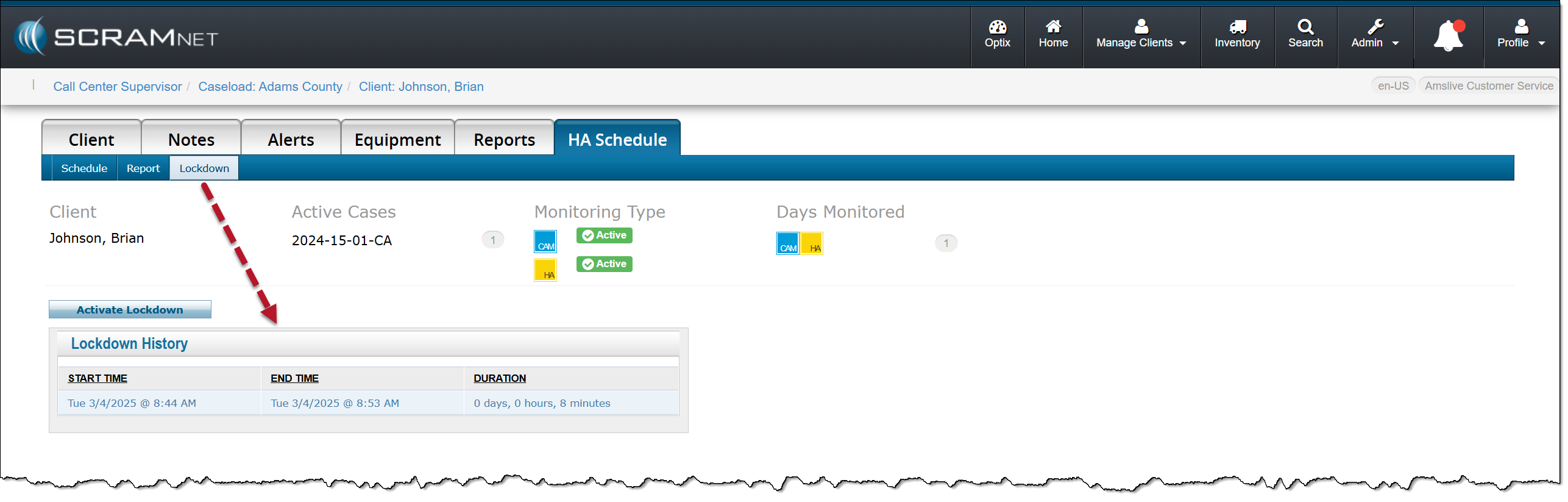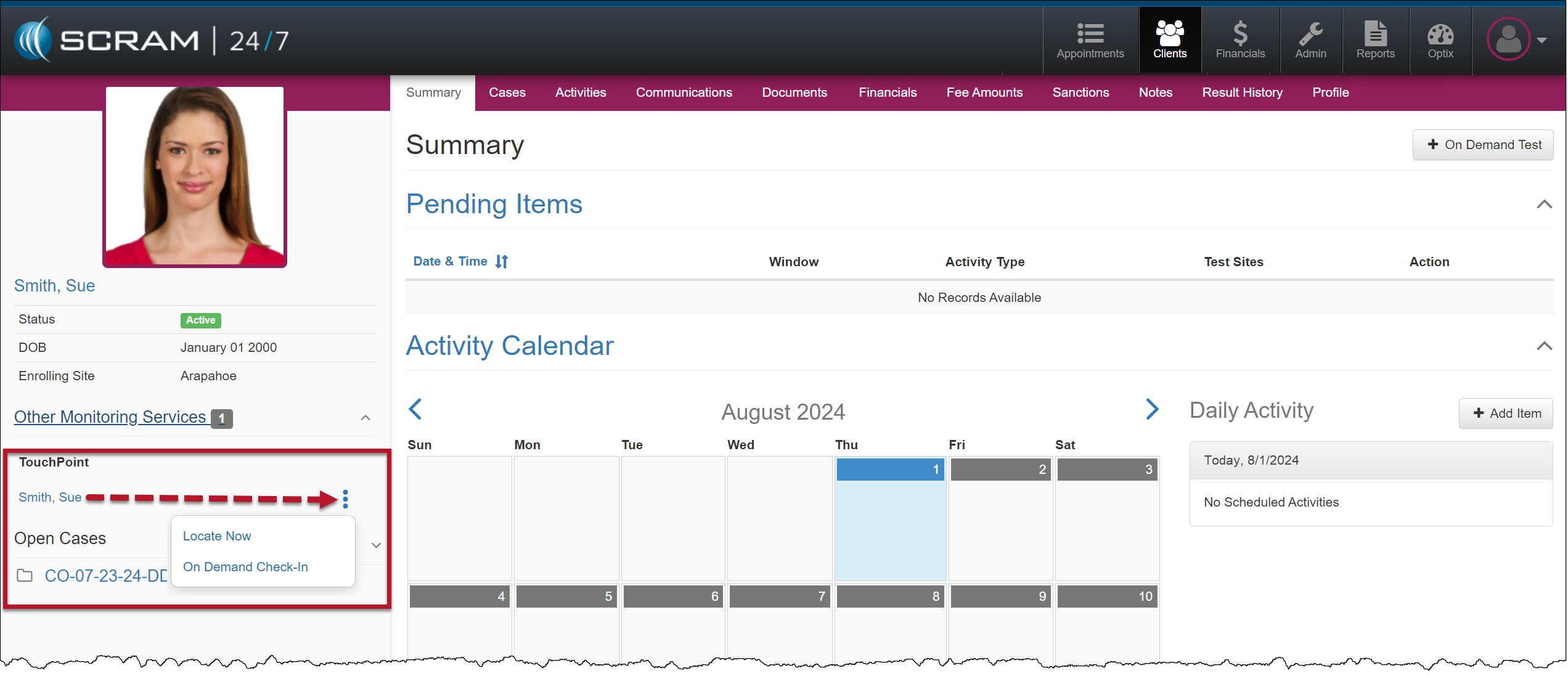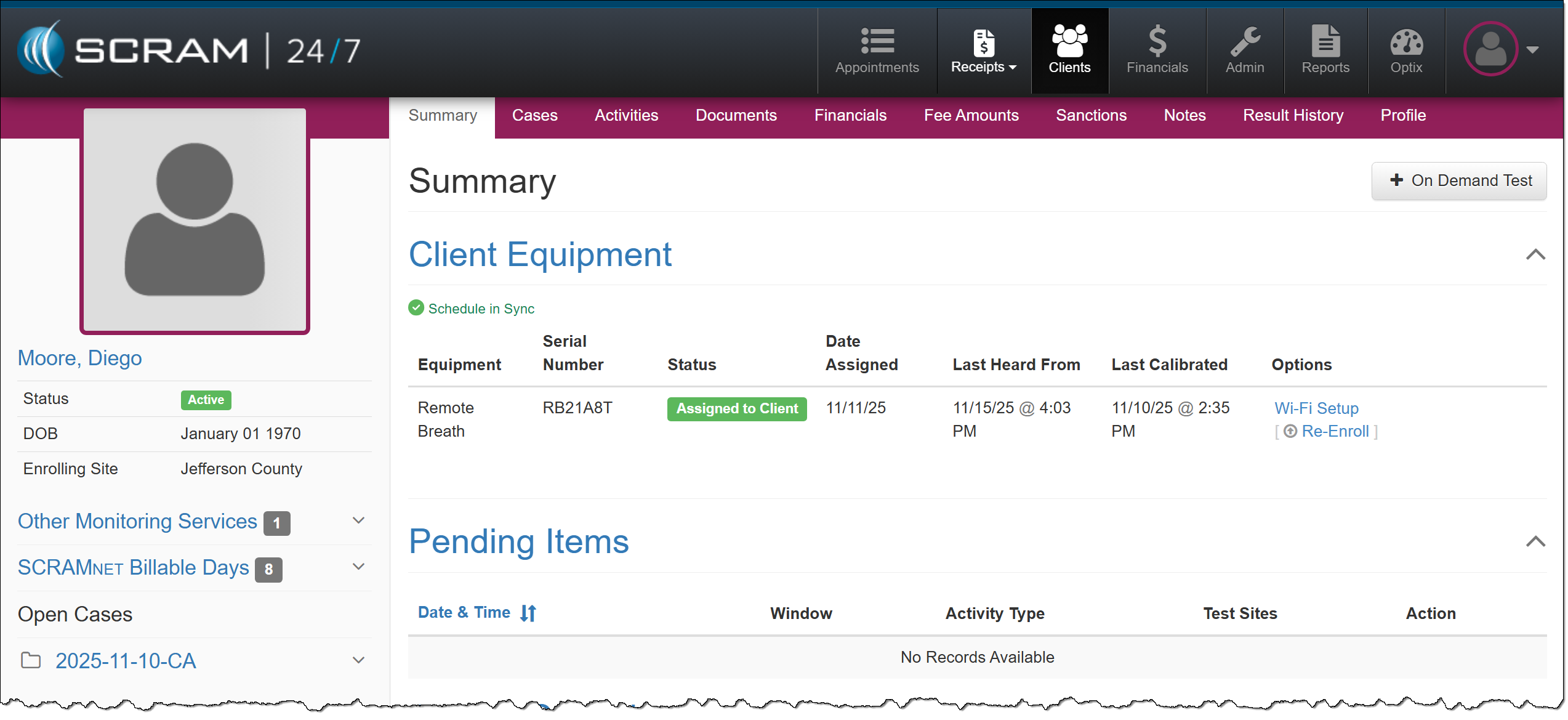 - View SCRAM GPS Supervision History on the client’s Summary page.