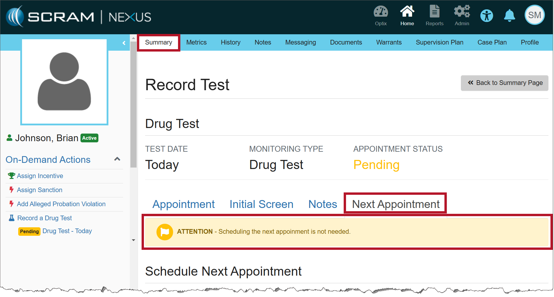 When recording the results of the Drug Test Appointment, there is no need to schedule the client’s next appointment because the random schedule has already been established.