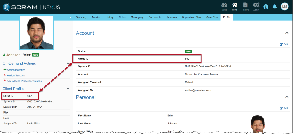 On August 21, 2025, SCRAM Systems will release an enhancement for your SCRAM Nexus Caseloads. With this improvement, the Personal section of the client’s Profile page has been expanded to include new optional identifying attributes, along with additional identification details.