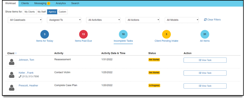 Caseworkers can look at the ratings by compliance action items, behavioral action items, or both (all). The default view will be ‘All’. The Progress Type is set in the Action Items catalog.