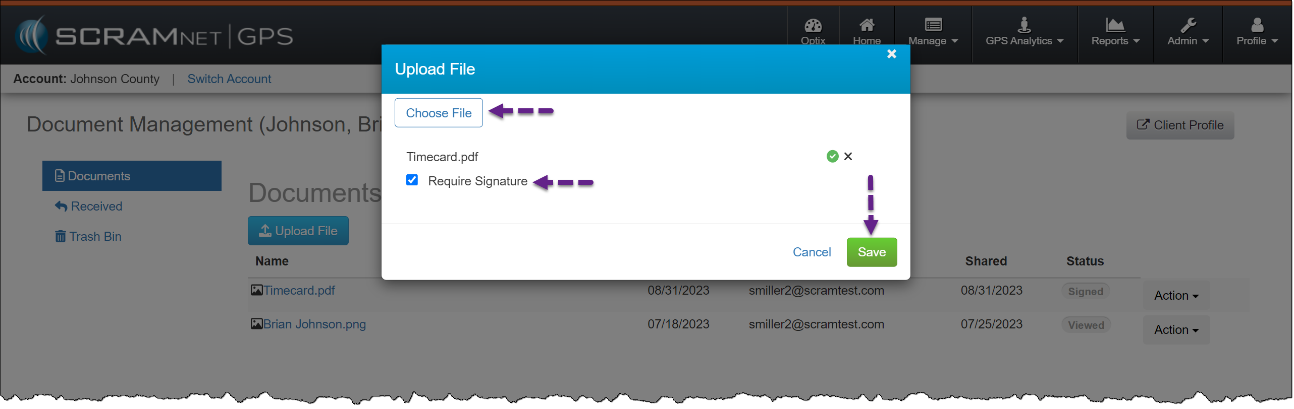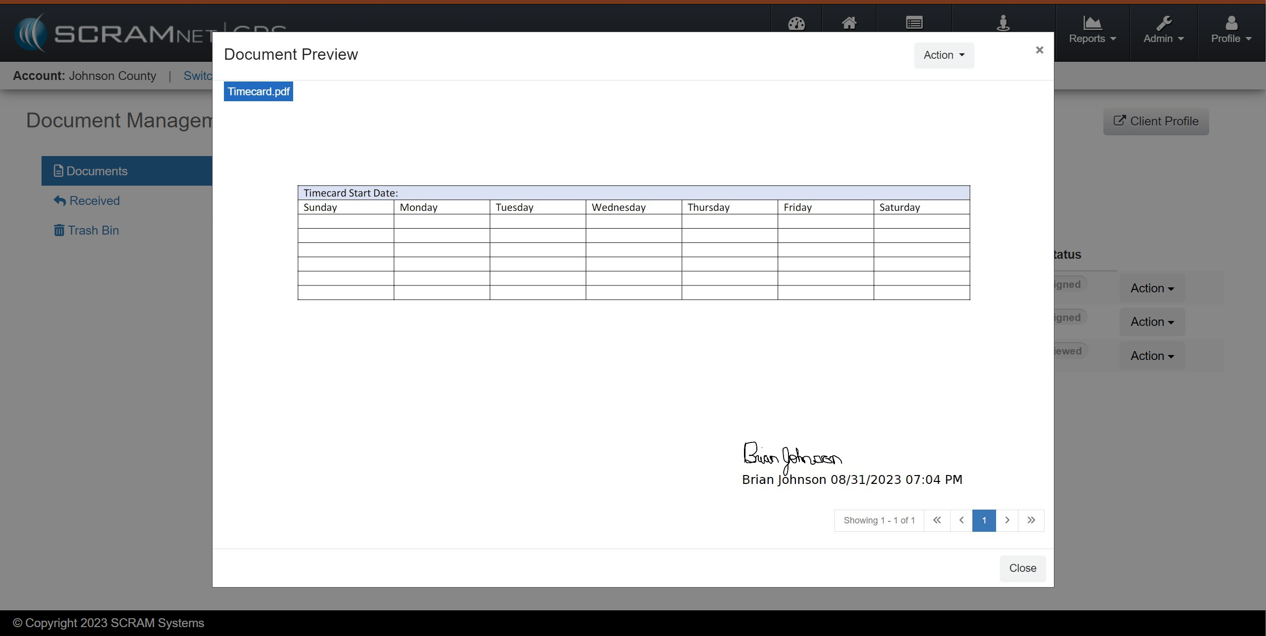 On, September 21, 2023, SCRAM Systems will release an enhancement to the SCRAM TouchPoint Documents page for your client’s supervision plan in SCRAMNET GPS . This enhancement enables you to require a client to electronically sign a PDF Document shared with them via their TouchPoint mobile application.