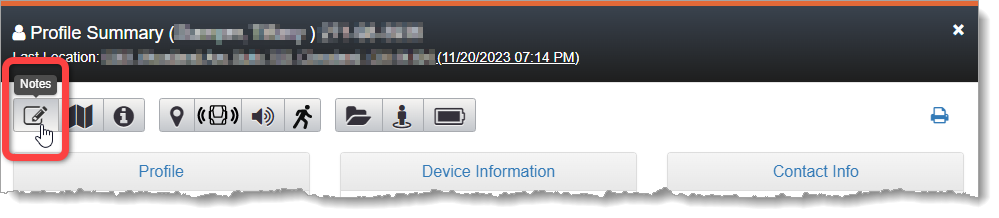 Notes may be updated to Monitoring Center tickets without closing or suspending the ticket. As many notes as needed may be added to the ticket without changing its status.