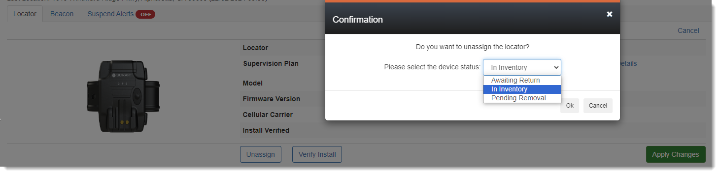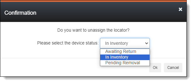 Device Status Dropdown Menu in Unassign Confirmation Dialog (click to enlarge)