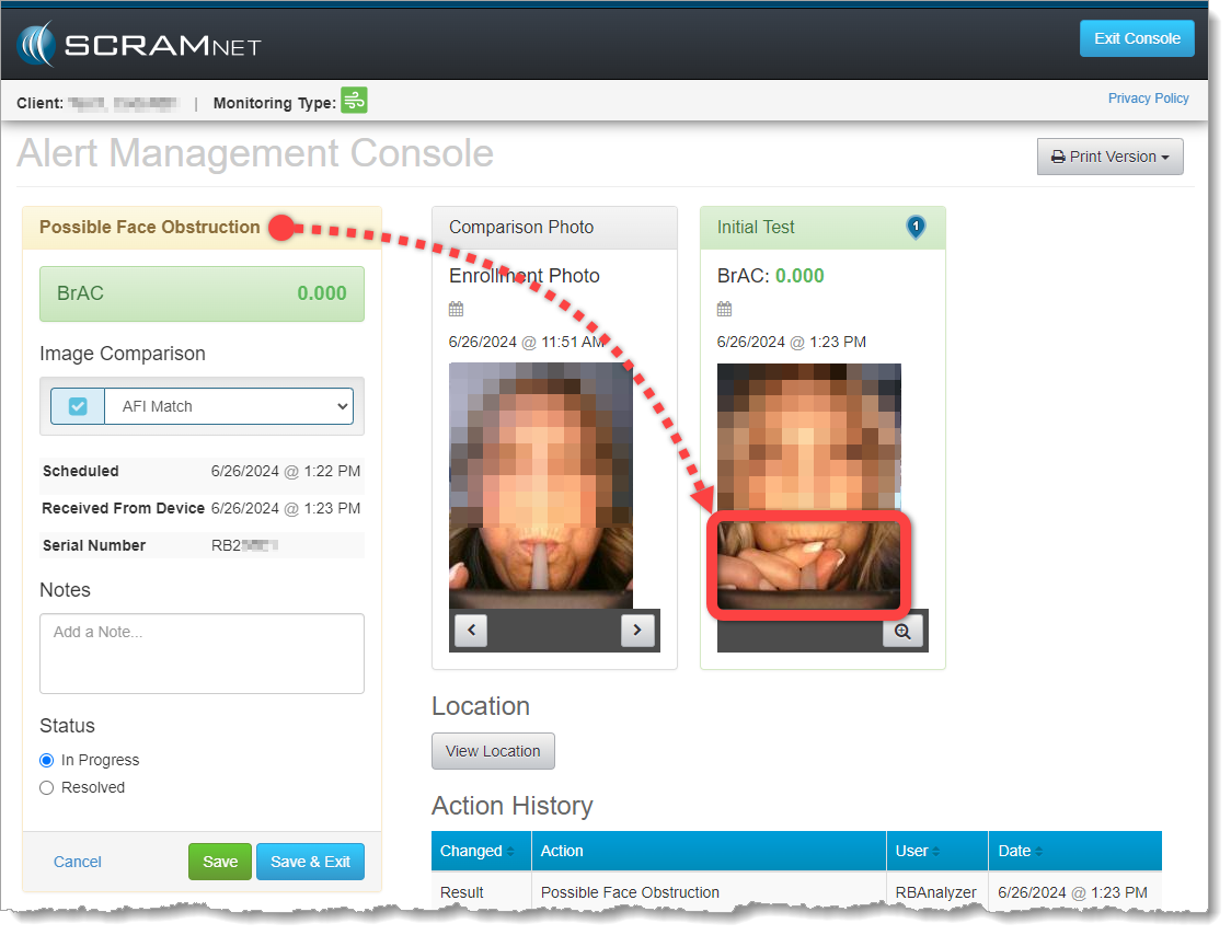 - Alcohol detected at Install – Alcohol detected at install. This could be attributed to prior consumption of alcohol, product use, or environmental contaminants. Waiting for alcohol to dissipate and reach zero for long enough to allow the required initialization to complete. Once the bracelet receives the required initialization this alert will auto resolve, and monitoring can begin.