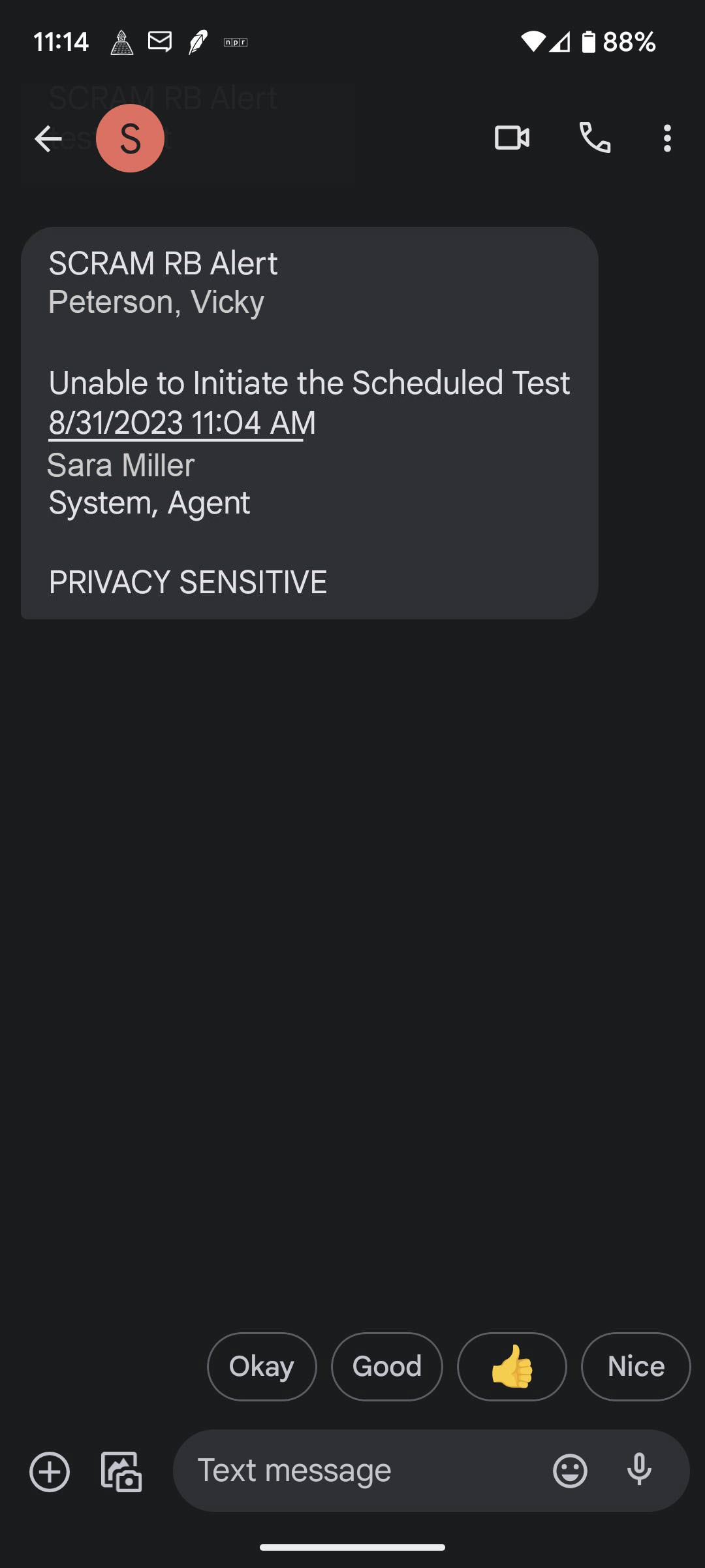 The Missed – Temperature notification message states, “Unable to Initiate the Scheduled Test.” Access the client’s RB Results page and the “Missed – Temperature” event in SCRAMNET to view additional details.