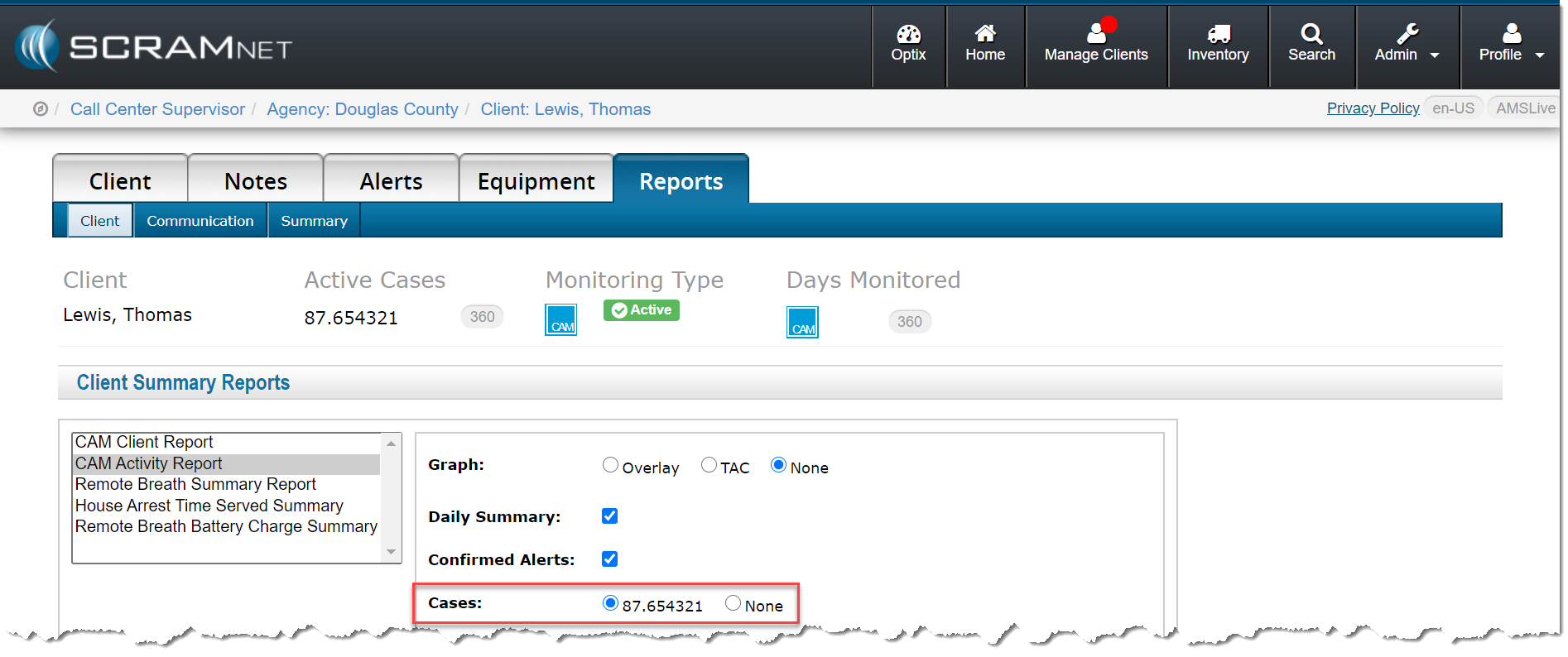 Today’s release allows you to include the case number assigned to a client when running a CAM Activity report in SCRAMNET®. To do that:
