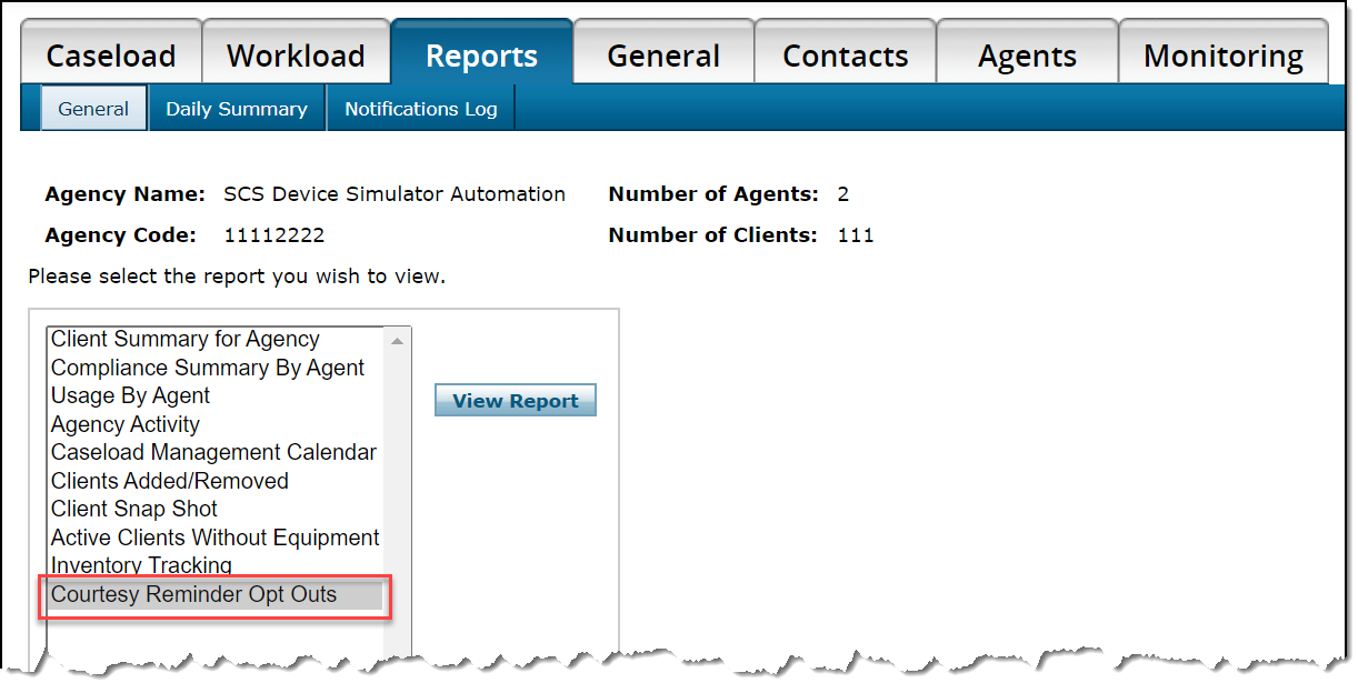 A new Courtesy Reminder Opt Outs report is now available for each caseload in SCRAMNET®. This report lists all SCRAM Remote Breath® clients who elected to opt out of receiving courtesy reminders that assist those clients with performing each breath test at the scheduled time.