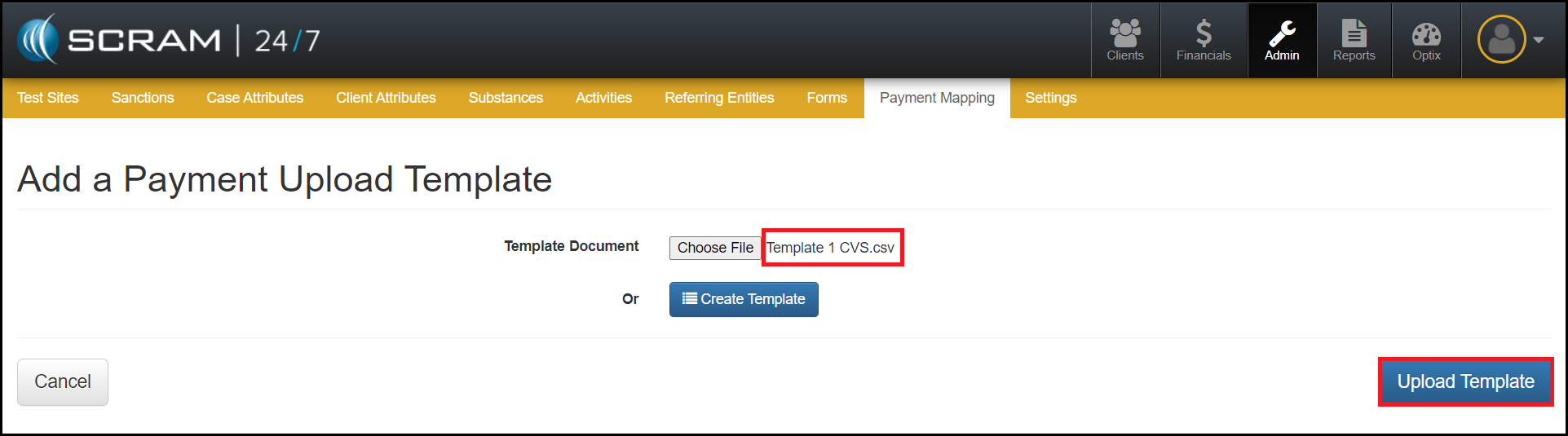 - Select the blue Upload Template button.