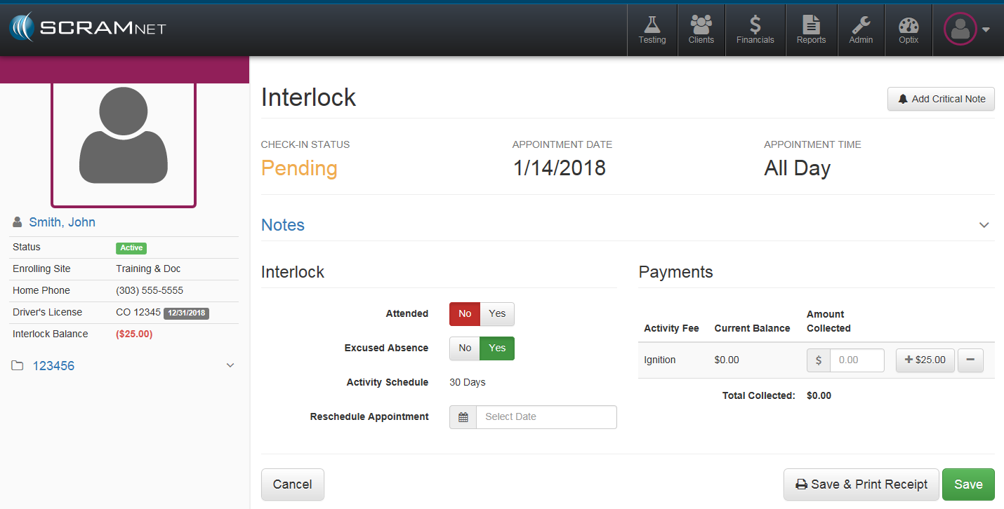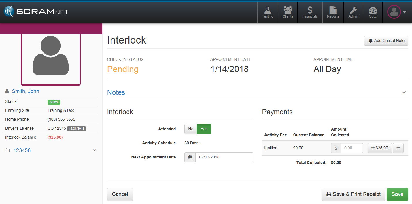 Note: The Interlock Appointment page can also be accessed from the client’s Summary page.