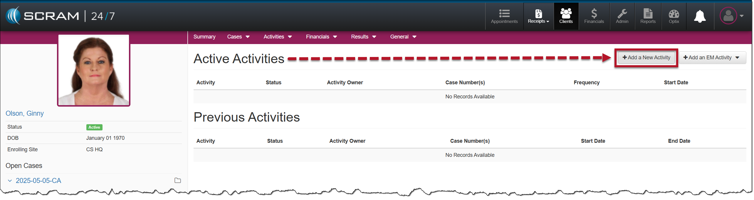 Starting on the client’s Active Activities page: