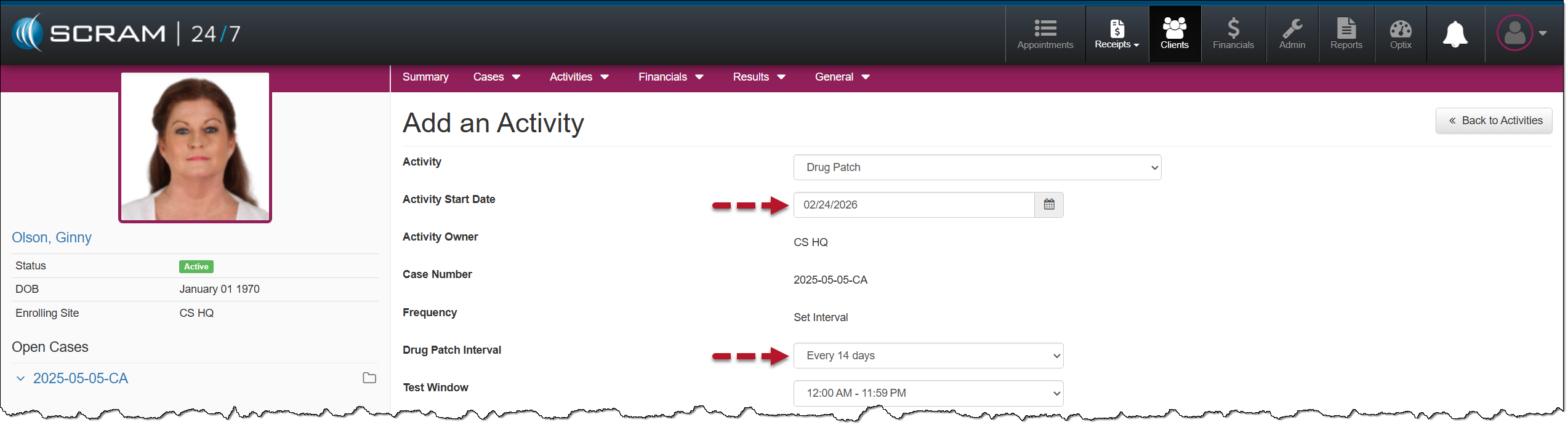 Once you have created the client’s profile, add the Drug Patch Activity to begin monitoring.