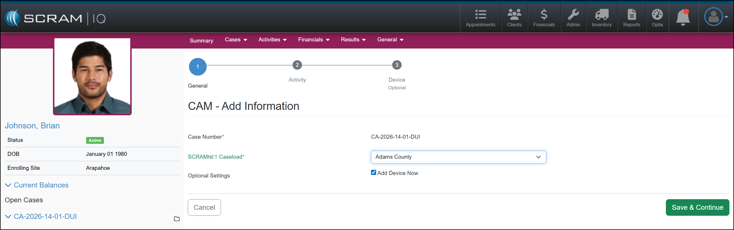 Once the client’s profile has been created, the next step is to add the monitoring Activity.