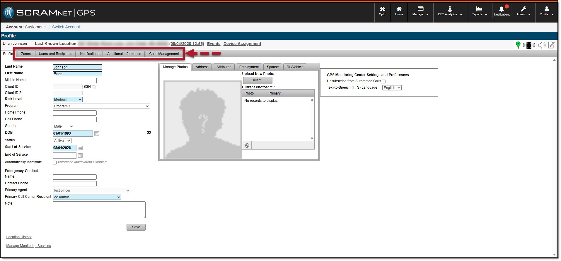 | At this time, you must access the client’s SCRAMNET GPS profile page by selecting their name hyperlink in the Other Monitoring Services section in the sidebar.