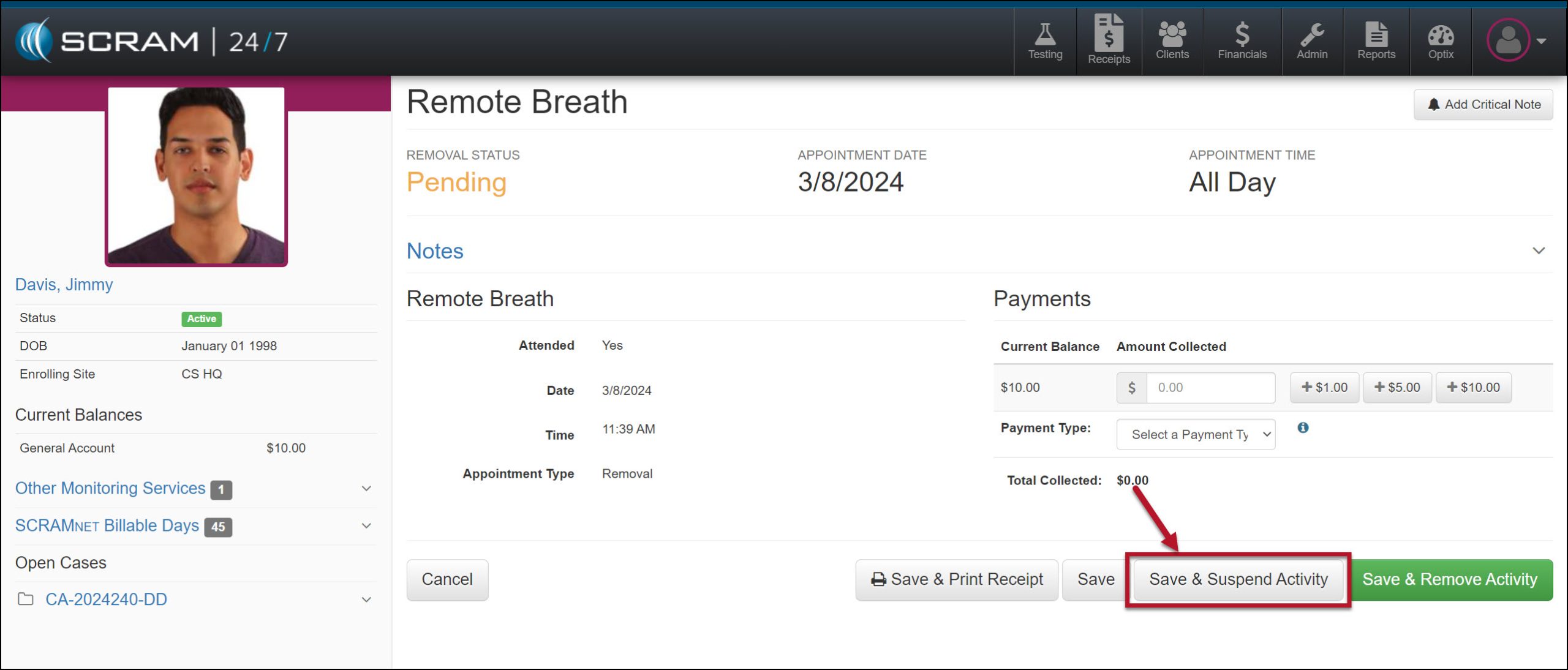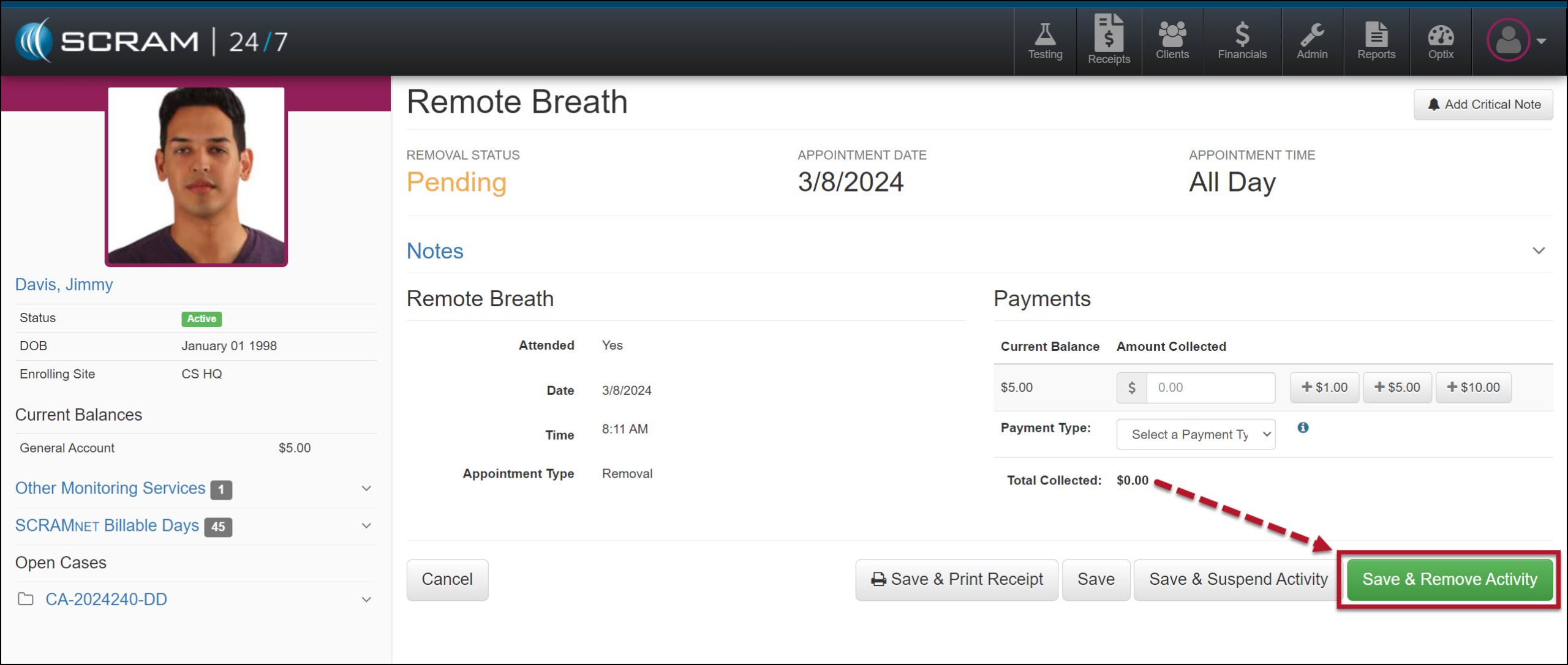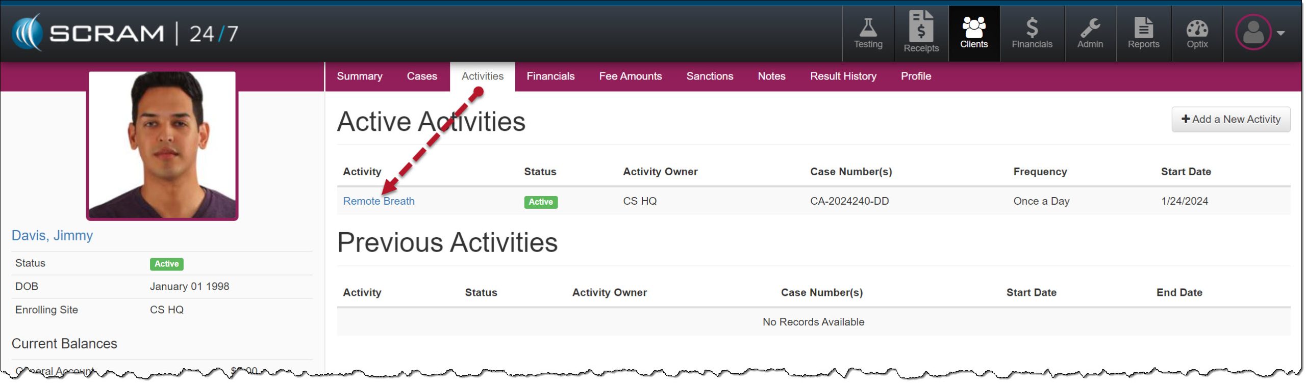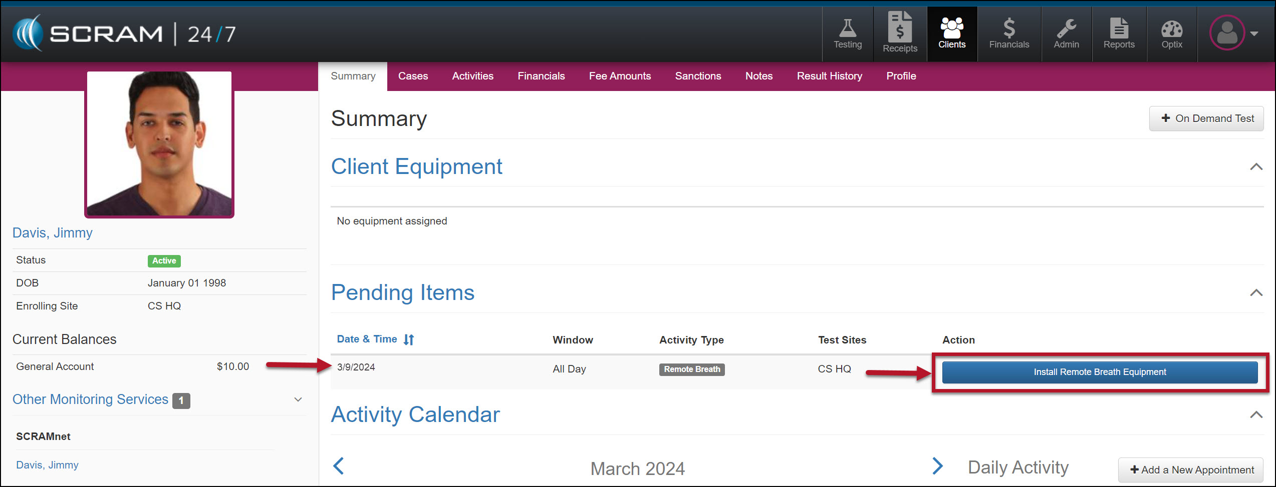 On the resume on a date, a new Install Remote Breath Equipment appointment will be displayed on the client’s Summary page.