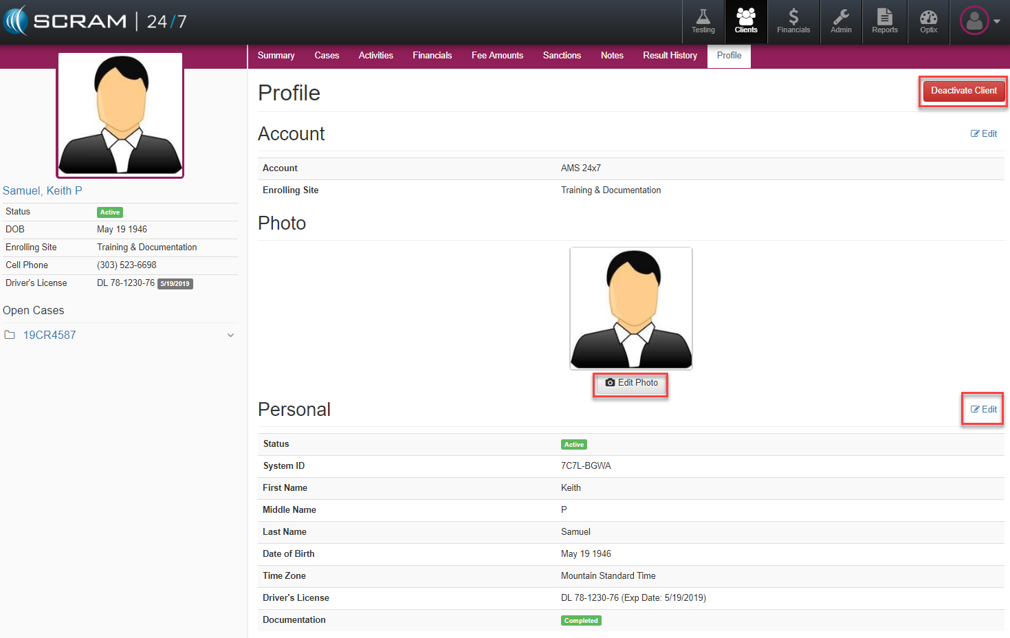 Should a client need to be removed or deactivated from the system, the Client Profile is where the Deactivate Client selection can be made.