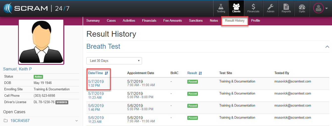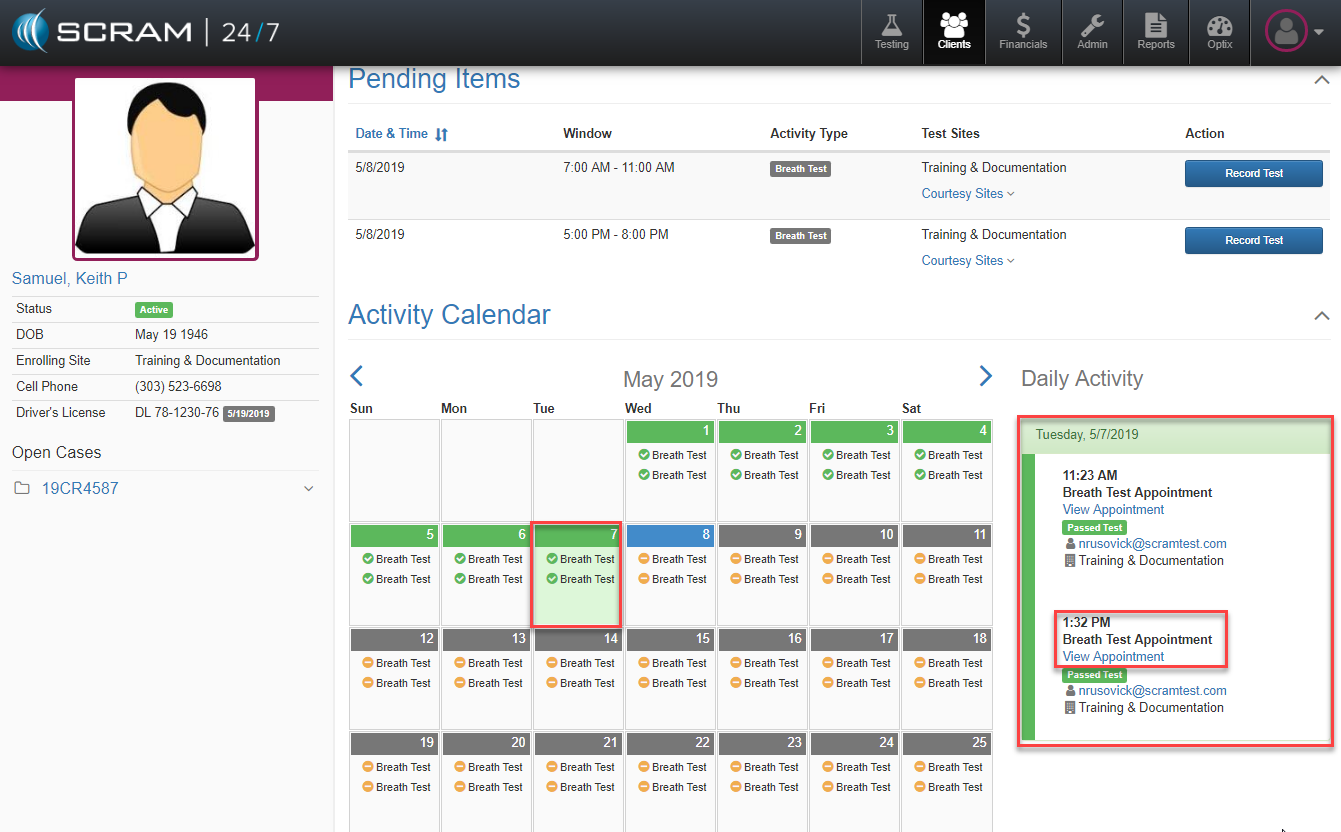 To edit a test or appointment after it has occurred, simply navigate to either the Activity Calendar or the Results history and select the specific appointment occurrence.