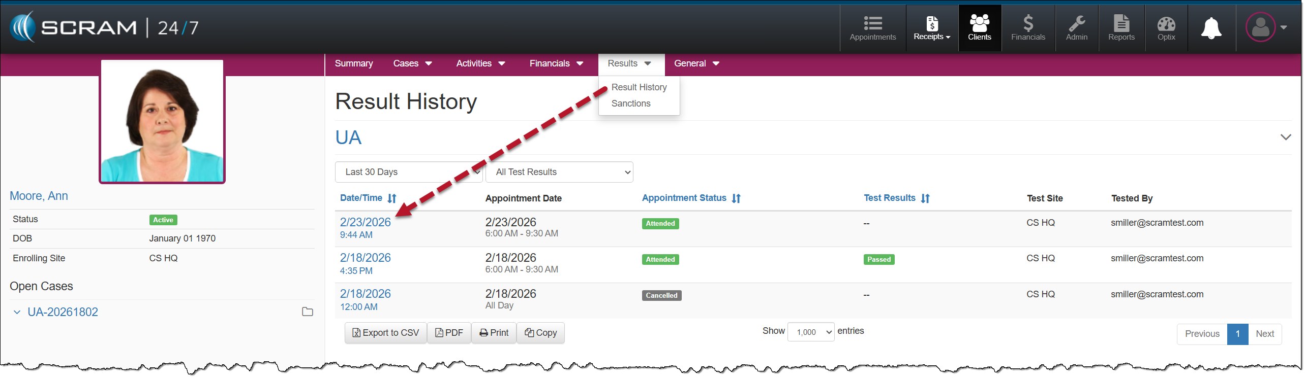 You may view the completed appointment on the Result History page.
