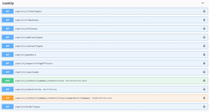 Currently from API’s Ethnicities lookup can be managed by adding/updating ethnicity values. Lookup values can also be managed from the Nexus Probation application, it supports Offense Categories, Client Types and Ethnicities.