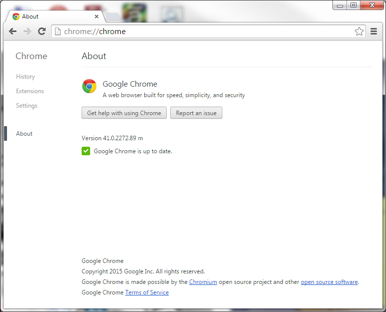 - Select the About Google Chrome option.