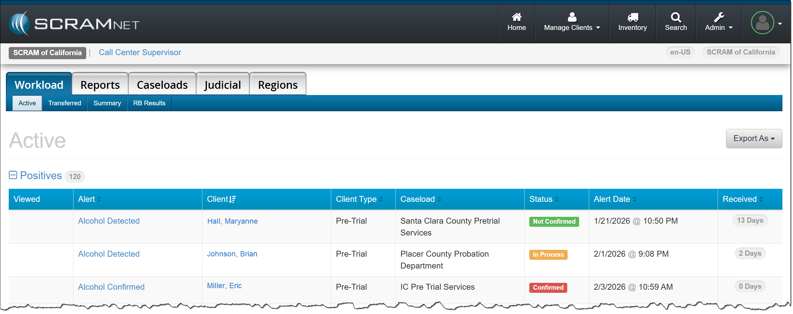 Once the system and your Data Analyst have completed their analysis of the data, depending on the outcome, they will post the alert to the Workload page for you to view and complete any necessary action. When handling the alerts in the “Positives” section on the Workload page, take note of the alert’s status: