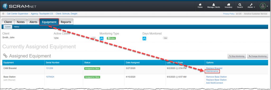 - Verify by looking at the top Date/Time link that the base station has recently communicated with SCRAMNET.