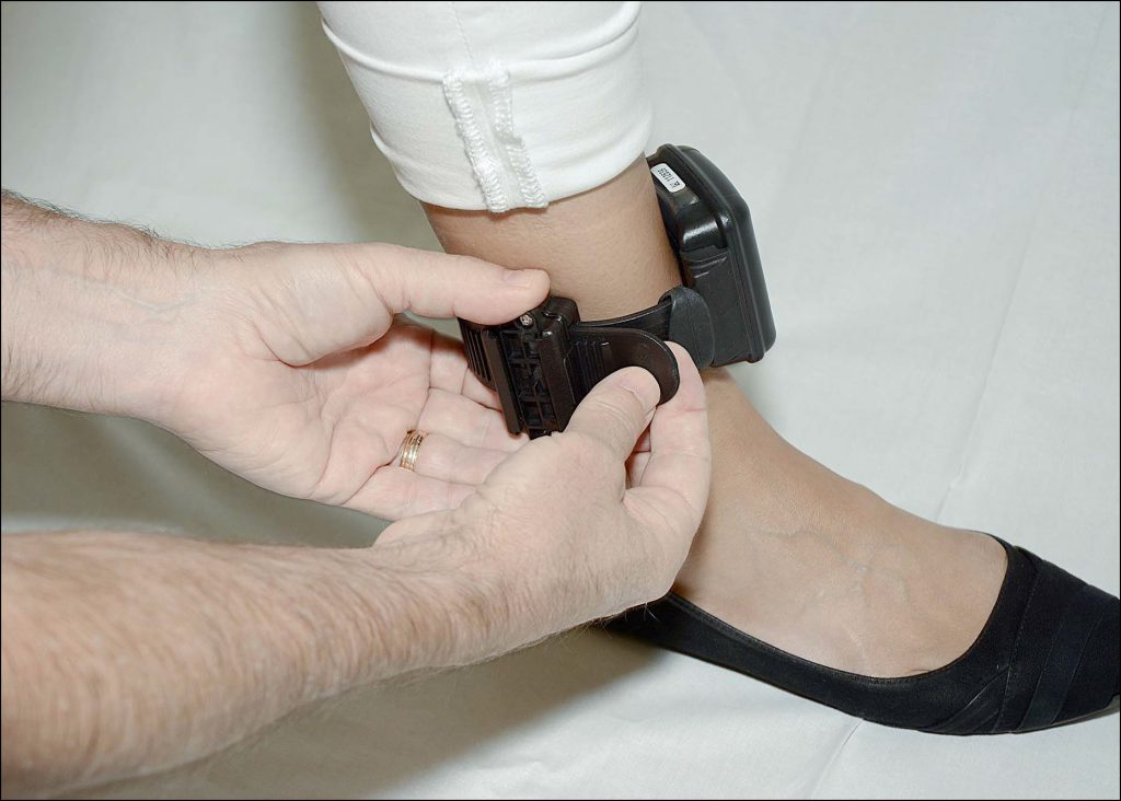 - Pull the strap back through the buckle, removing the bracelet from the client’s ankle.