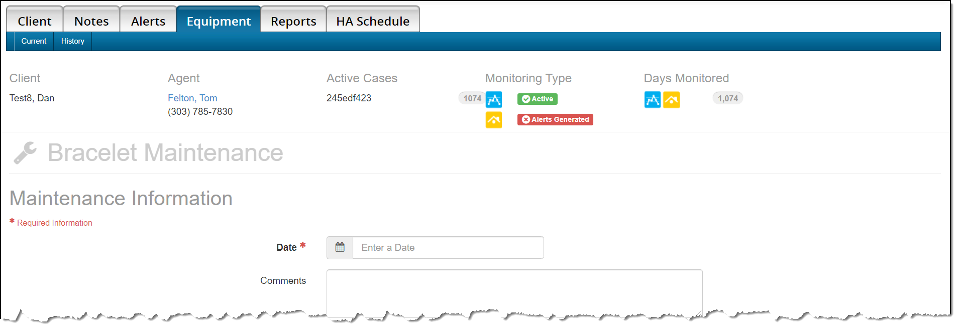 To complete the maintenance:- Access the client’s Equipment page.