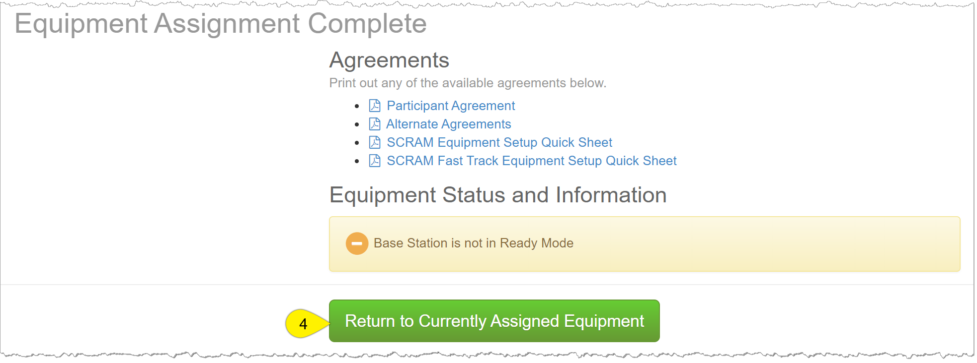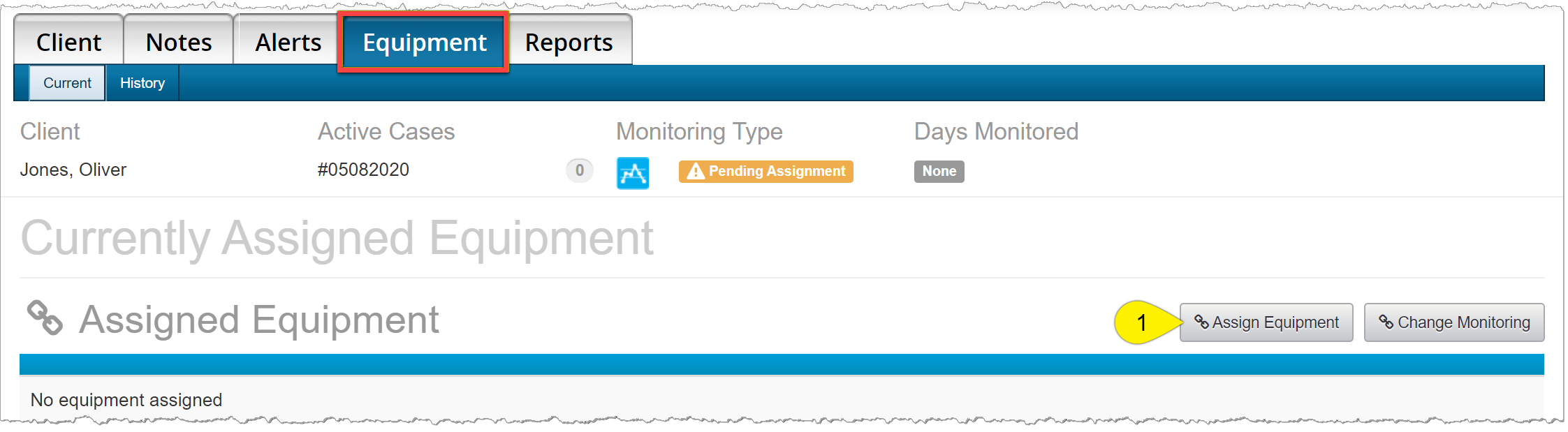 Navigate to SCRAMNET and refresh the Equipment page for the subject. The equipment status should now display, Assigned to Client.