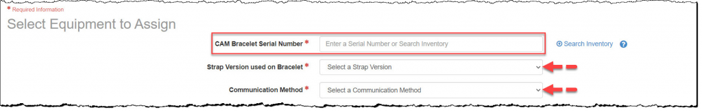 - Enter the CAM Bracelet Serial Number.
