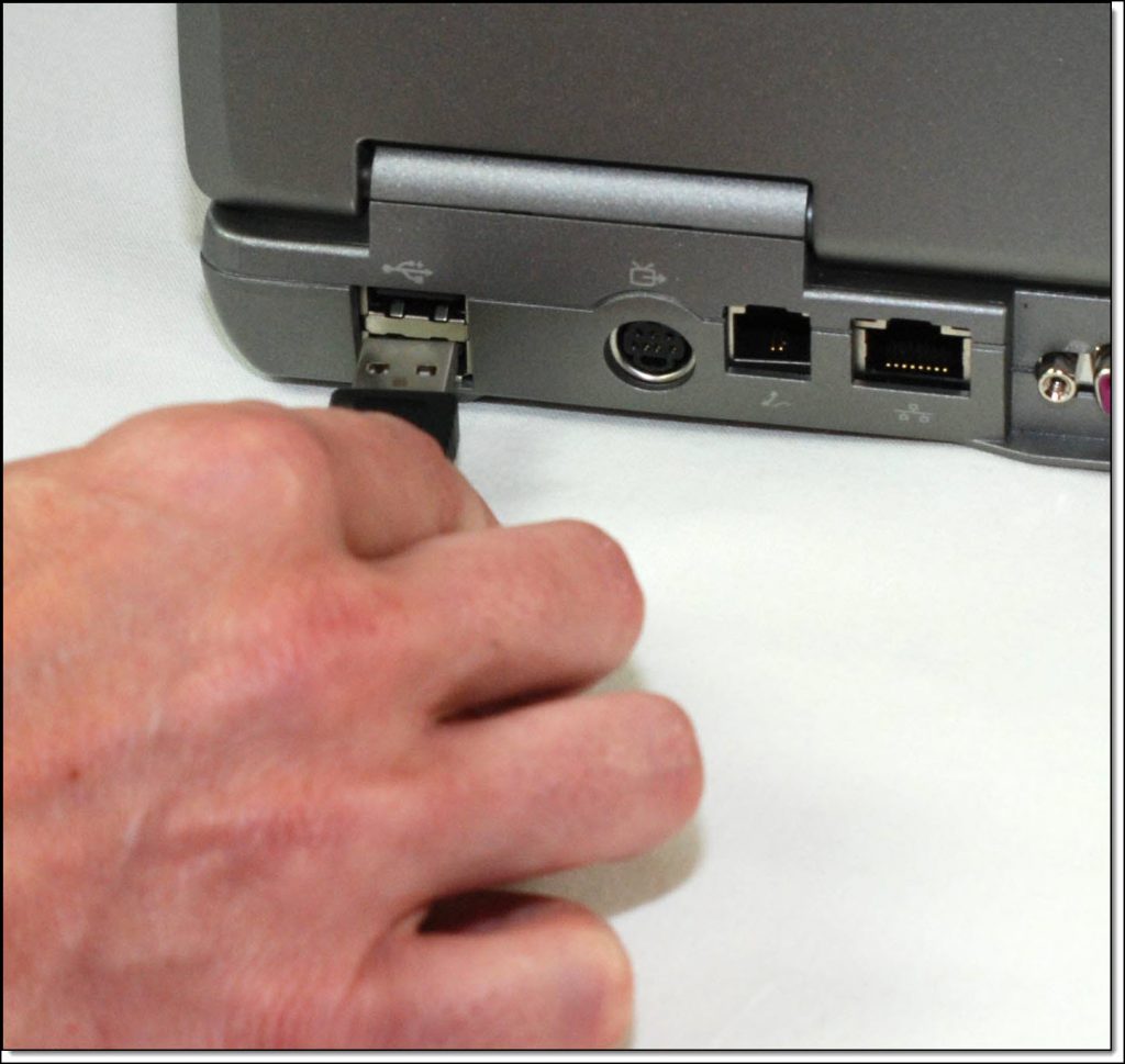 - Plug the small (mini-B type) USB connector into the Direct Connect device and the large (A type) USB connector into the USB port on your computer.