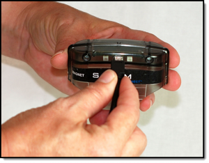 - Attach Direct Connect Device to bracelet by aligning the Direct Connect device with the top of the bracelet and then sliding the Direct Connect device down over the bracelet.